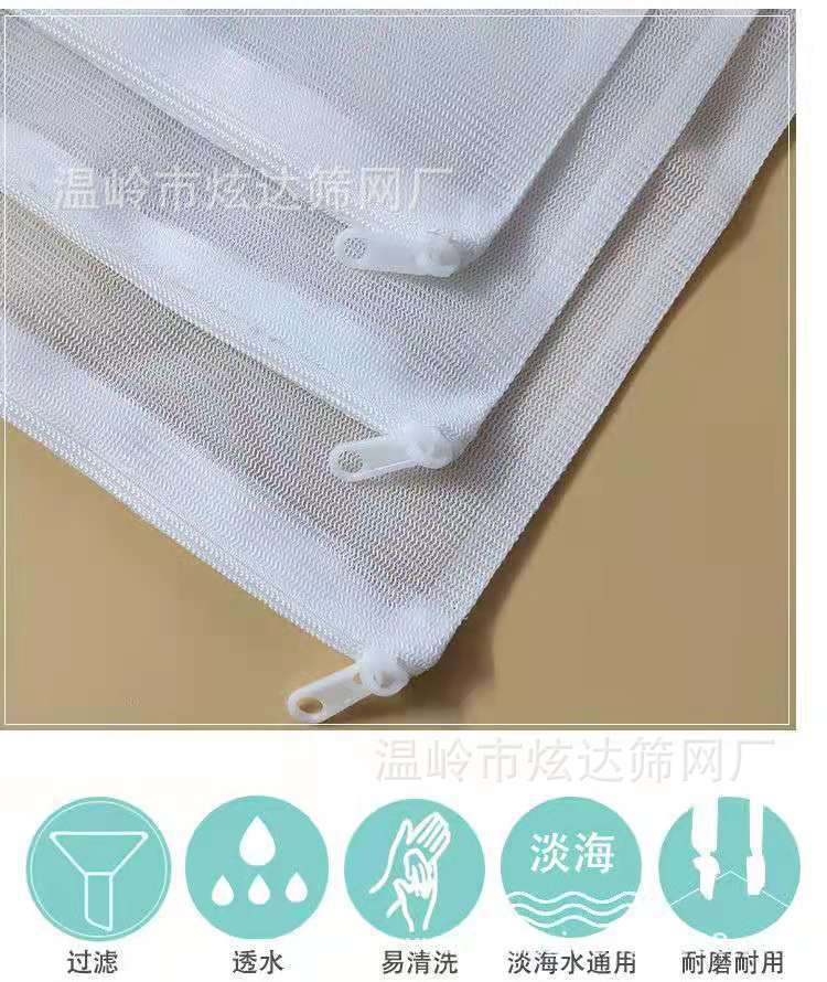 本品采用耐腐蚀材料精致而成,袋口设有优质拉链,方便清洗维护。使用时将过滤材料装入网袋后放入过滤槽或者过滤桶内,更换或清洗滤材时直接将滤网袋提出即可。