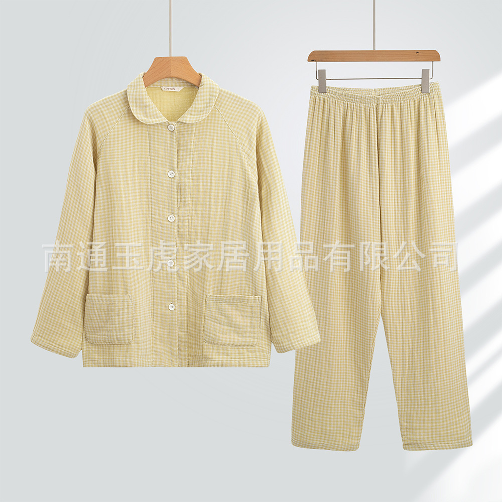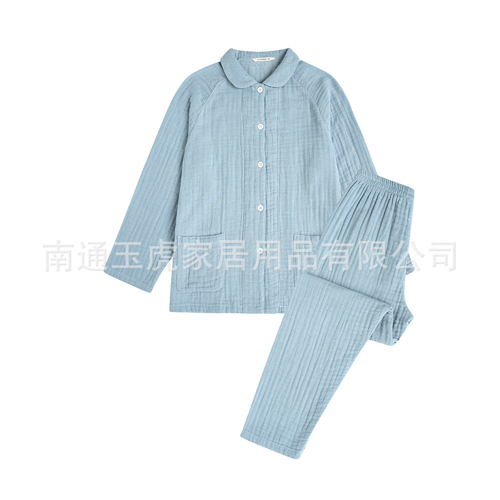 신제품 무인쇄 순면 4겹 거즈 잠옷 여성용 커플용 두꺼운 이중 순면 홈웨어 긴팔 긴바지 세트스토어 가기