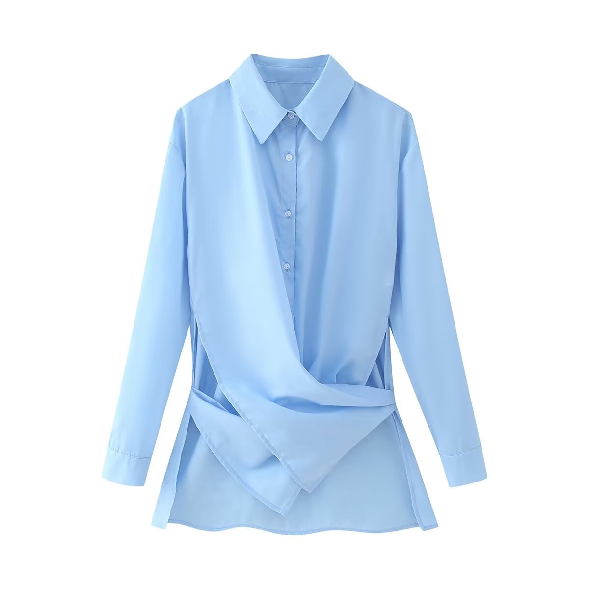 UC & ZA 국경 AliExpress 유럽과 미국 스타일의 여성 여름 디자인 단색 긴 소매 스트랩 기질 슬림 셔츠스토어 가기