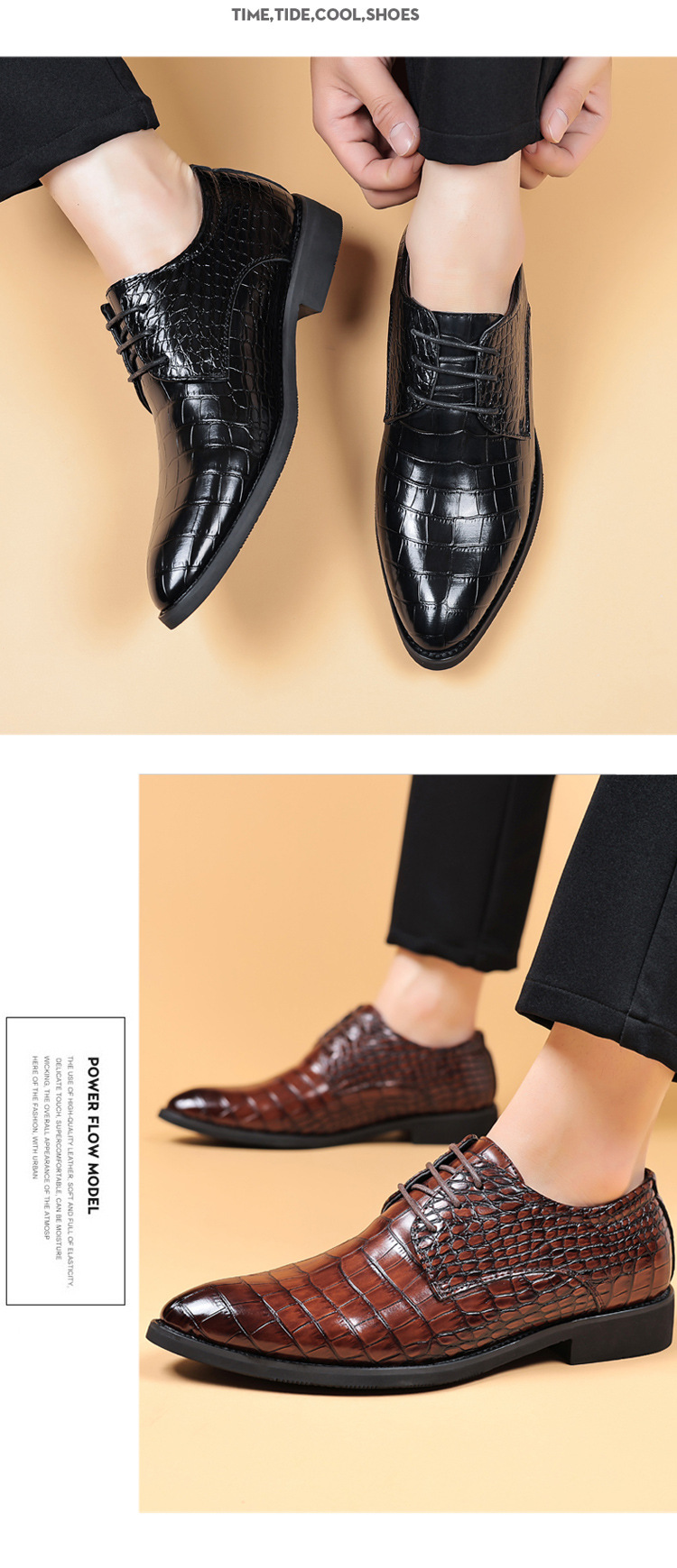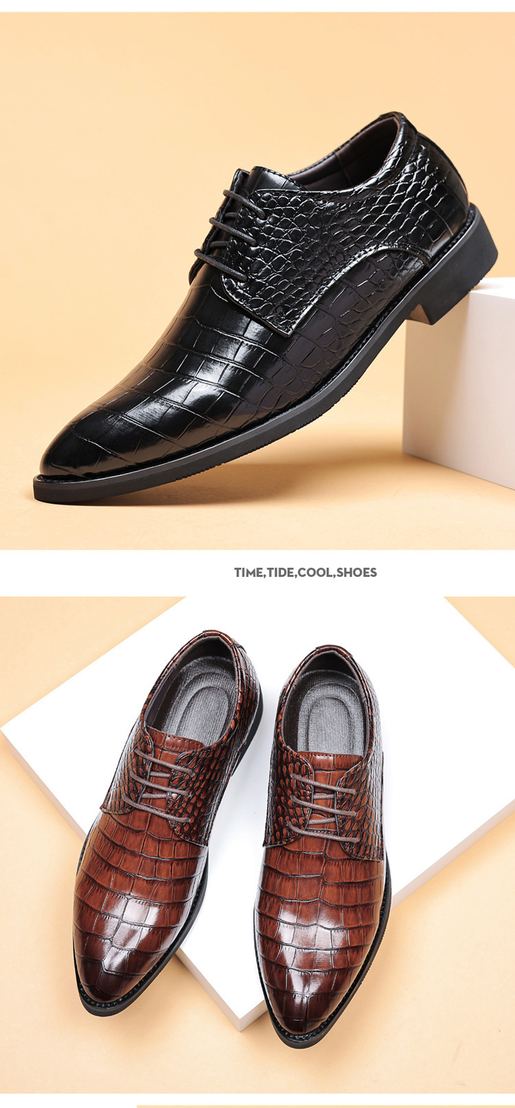 2024 가죽 신발 남성 신사업 원피스 캐주얼 신발 악어 패턴 남성 영국 한국 스타일 포인팅 발가락 플러스 사이즈 신발스토어 가기