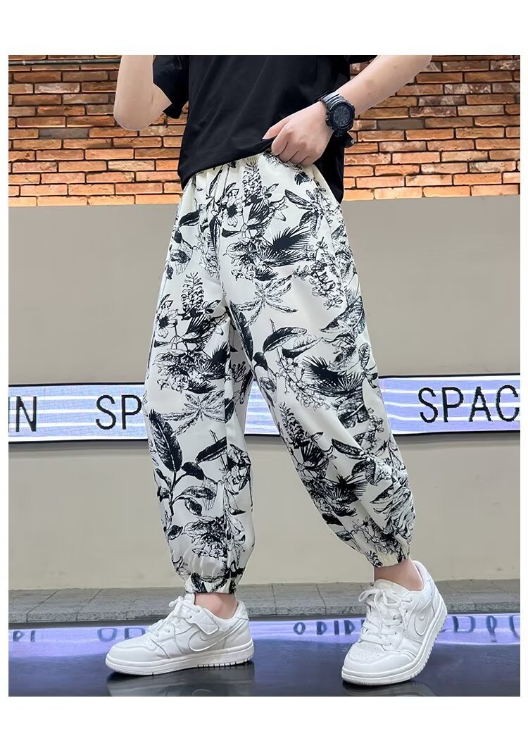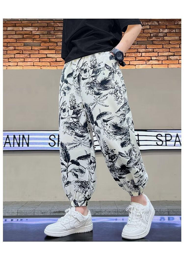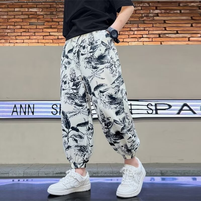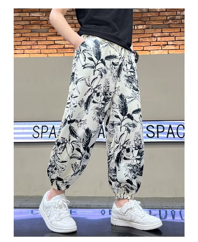소년 여름 바지 2024 새로운 어린이 여름 모기 방지 바지 어린이 얼음 실크 빠른 건조 바지 소년 스포츠 바지
