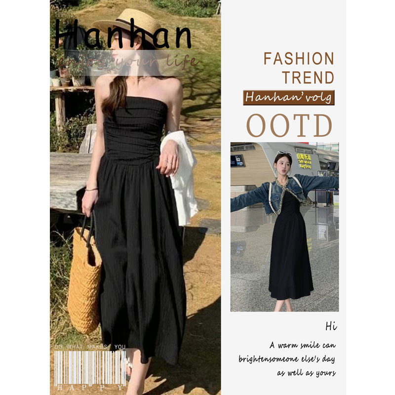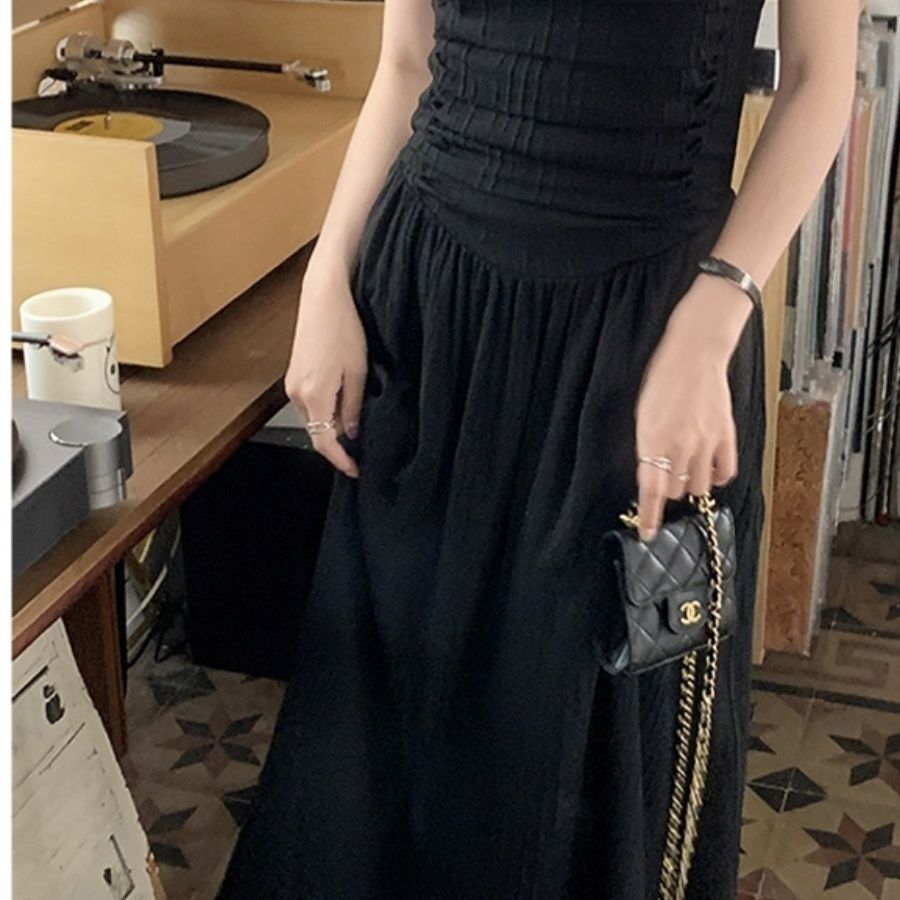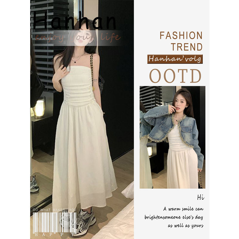 달콤한 흰색 끈이없는 원피스 여성의 봄 2024 새로운 부드러운 우아한 주름진 허리 가슴 포장 기본 원피스스토어 가기