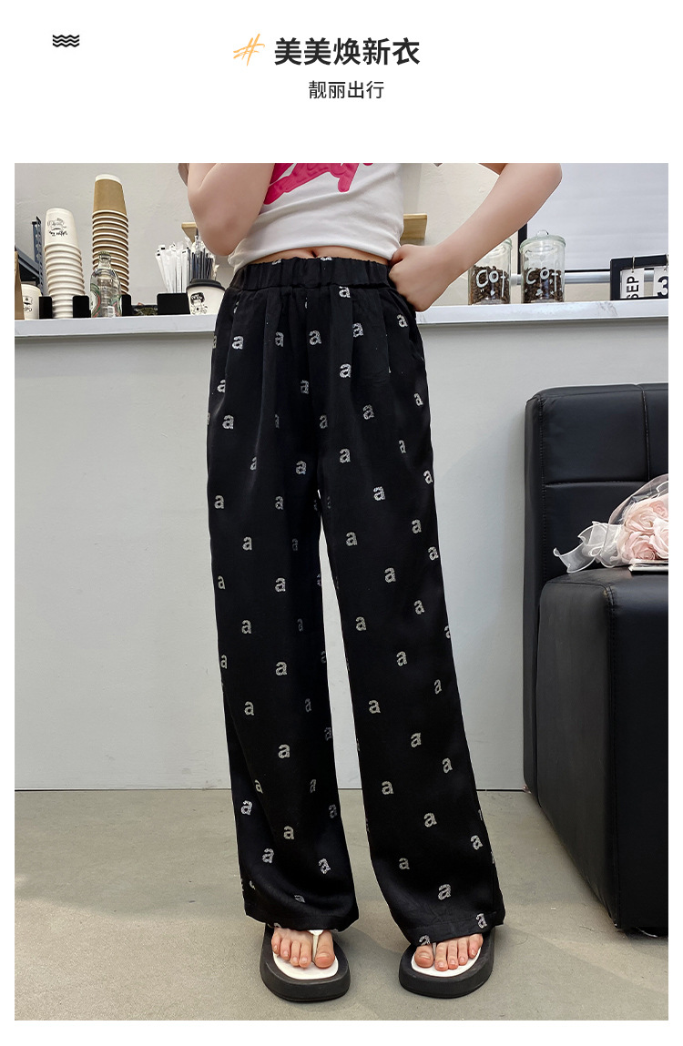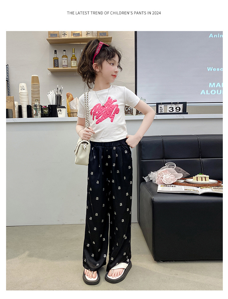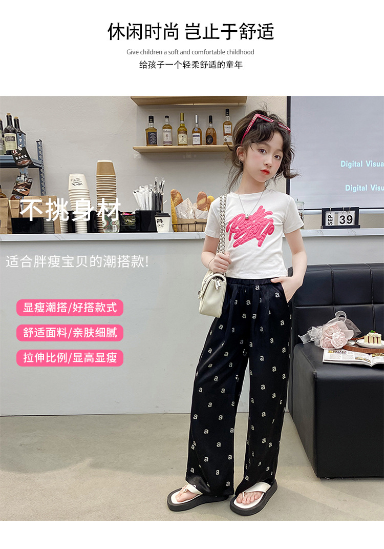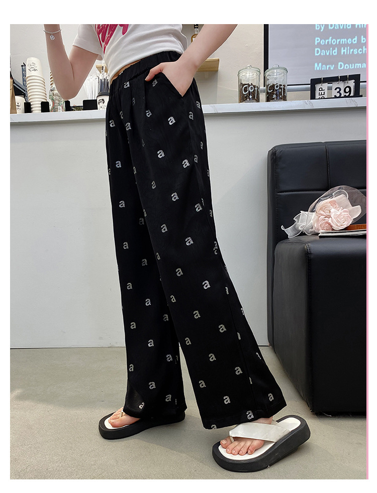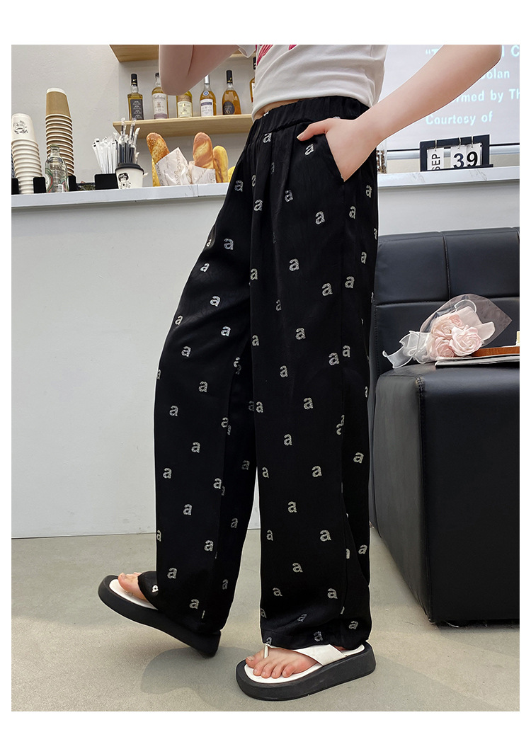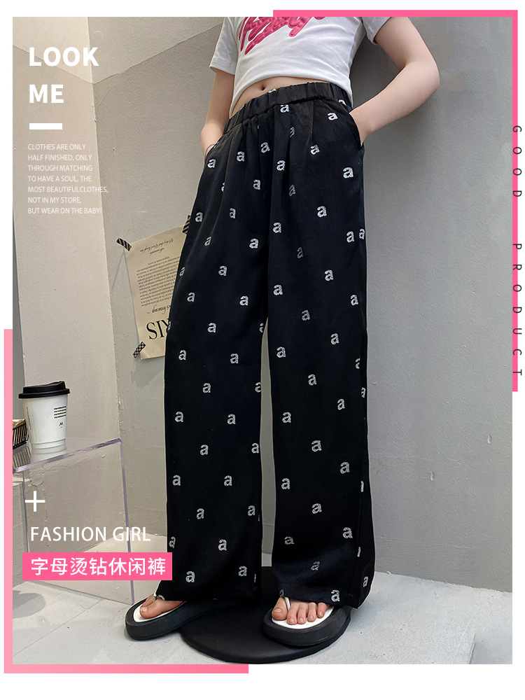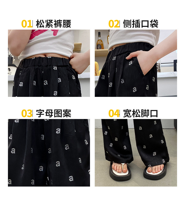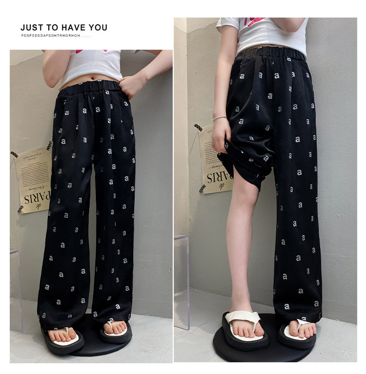 소녀 안티-모기 바지 여름 얇은 2024 새로운 어린이 서양식 넓은 다리 바지 큰 어린이 여름 캐주얼 긴 바지스토어 가기