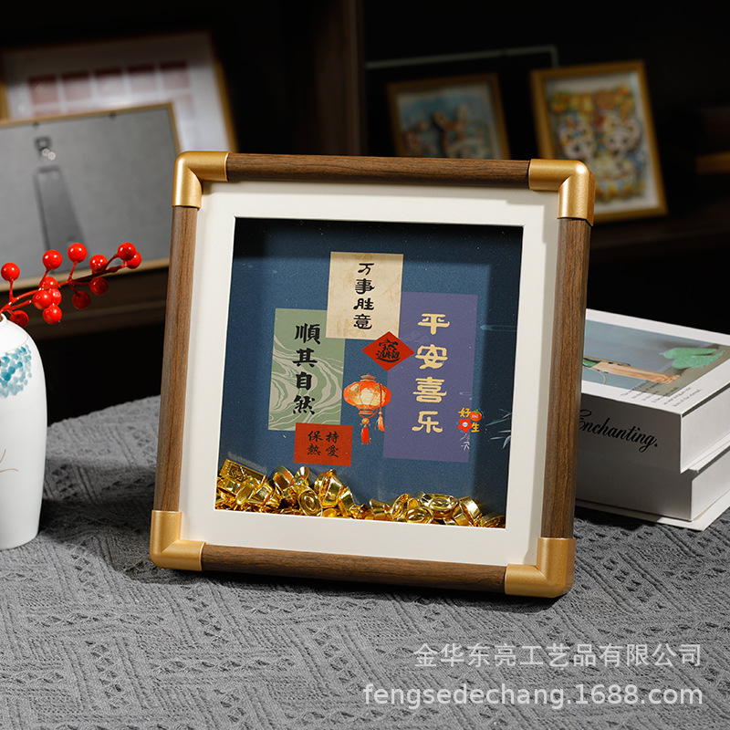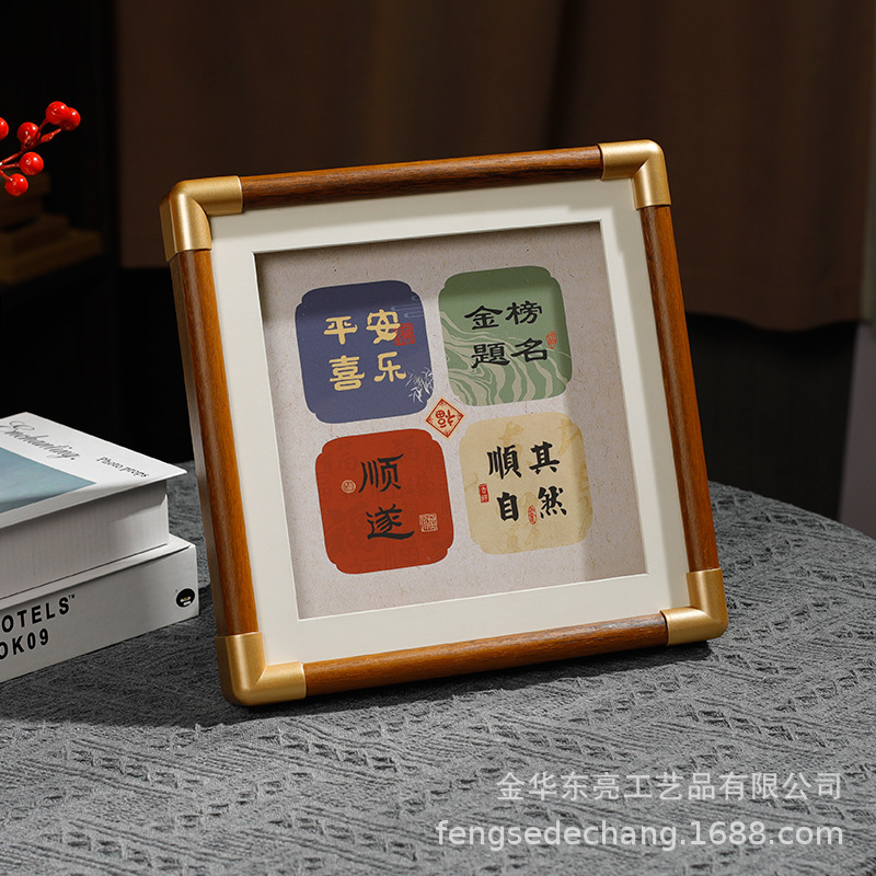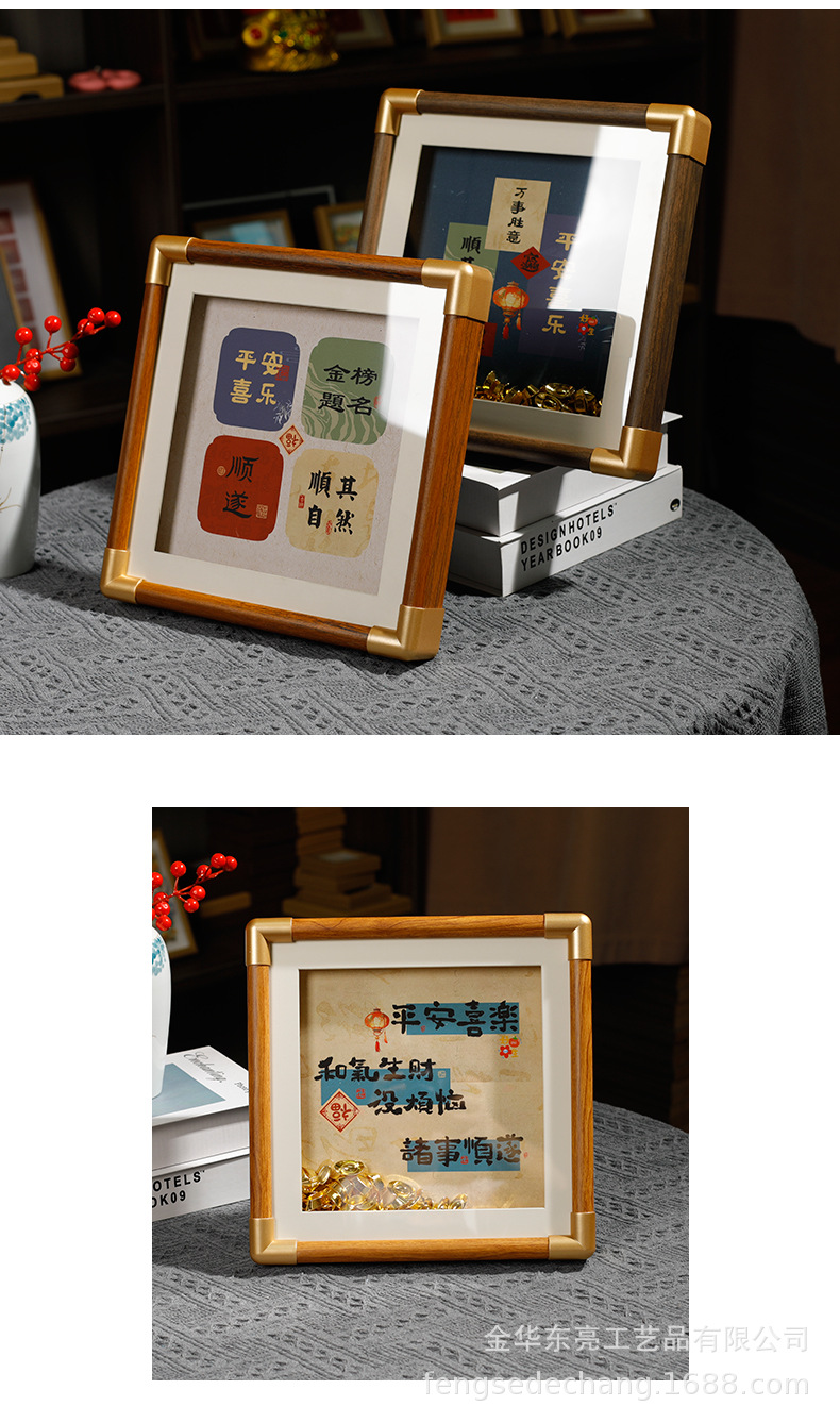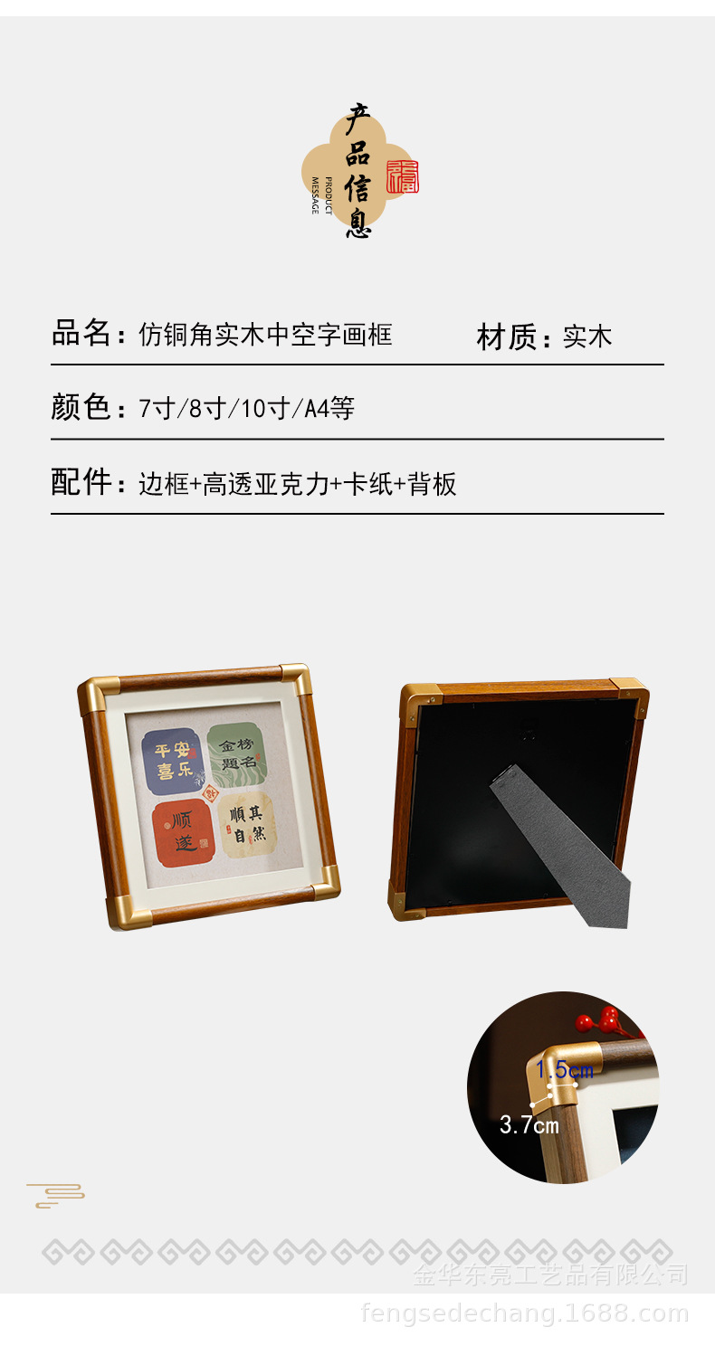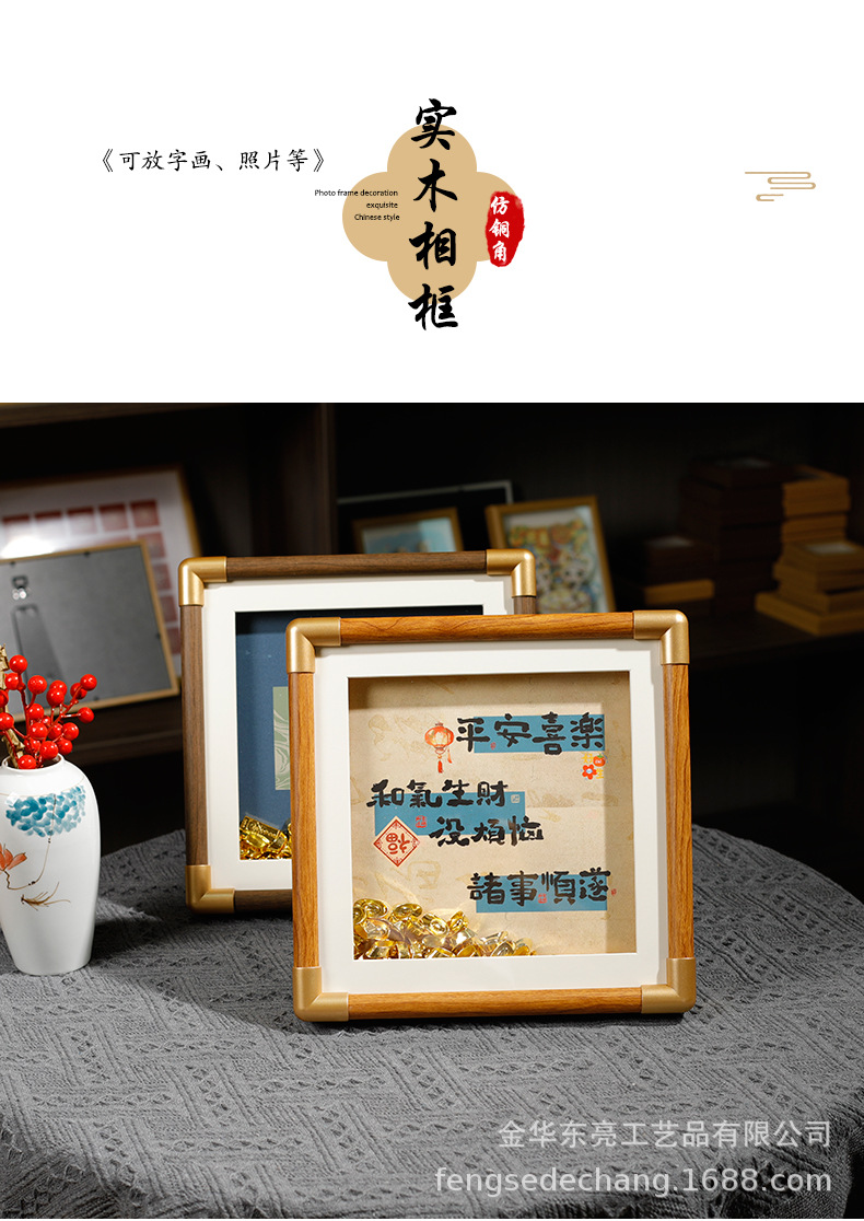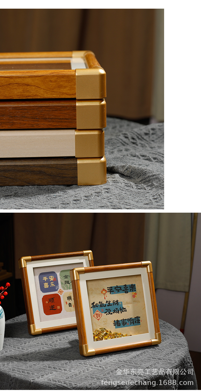 단단한 나무 모조 구리 코너 중공 사진 프레임 질감 나무 테이블 도매 고급 데스크탑 장식품 그림 프레임 제조 업체 도매스토어 가기