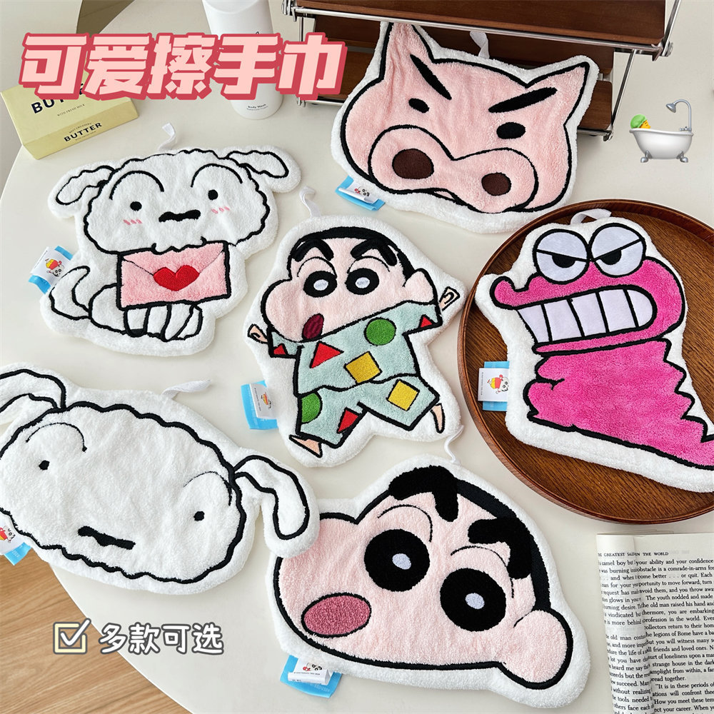 크레용 작은 새로운 정품 모양의 핸드 타월 귀여운 만화 산호 양털 흡수 빠른 건조 다목적 3 차원 자수 수건