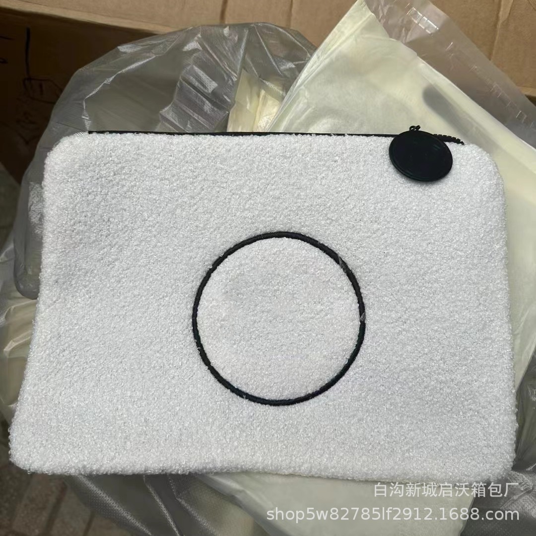 2024 새로운 양고기 양모 화장품 가방 여성용 클러치 가방 유행 편지 자수 대용량 휴대용 보관 가방스토어 가기