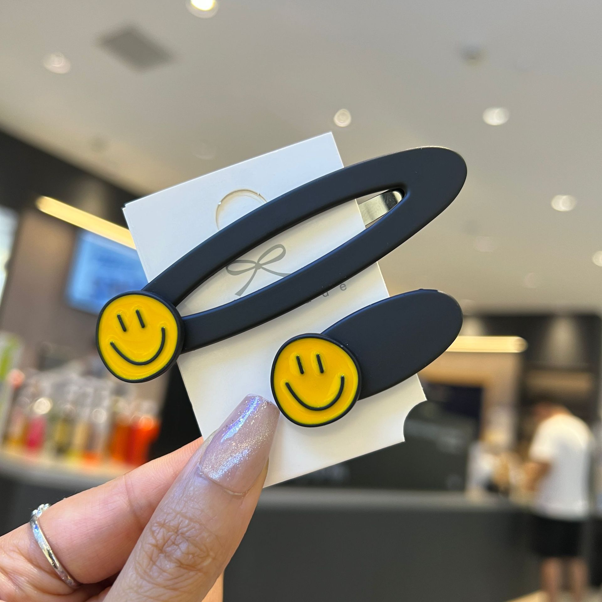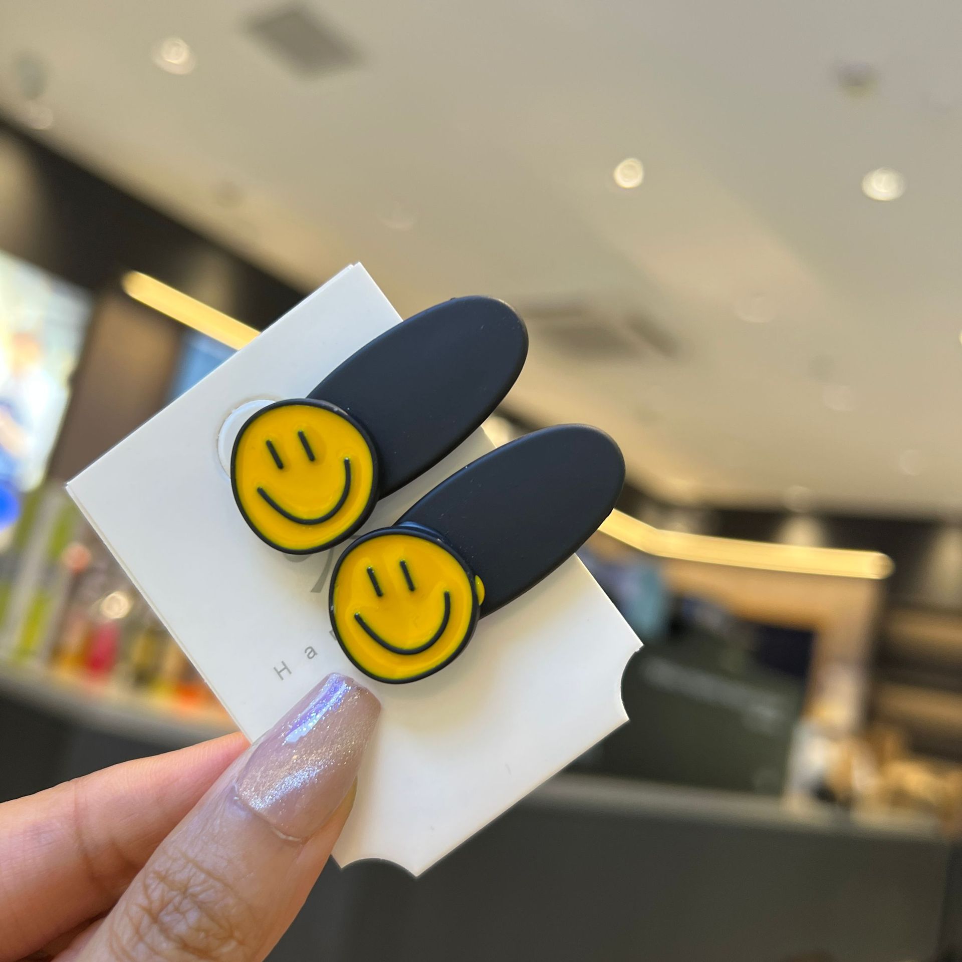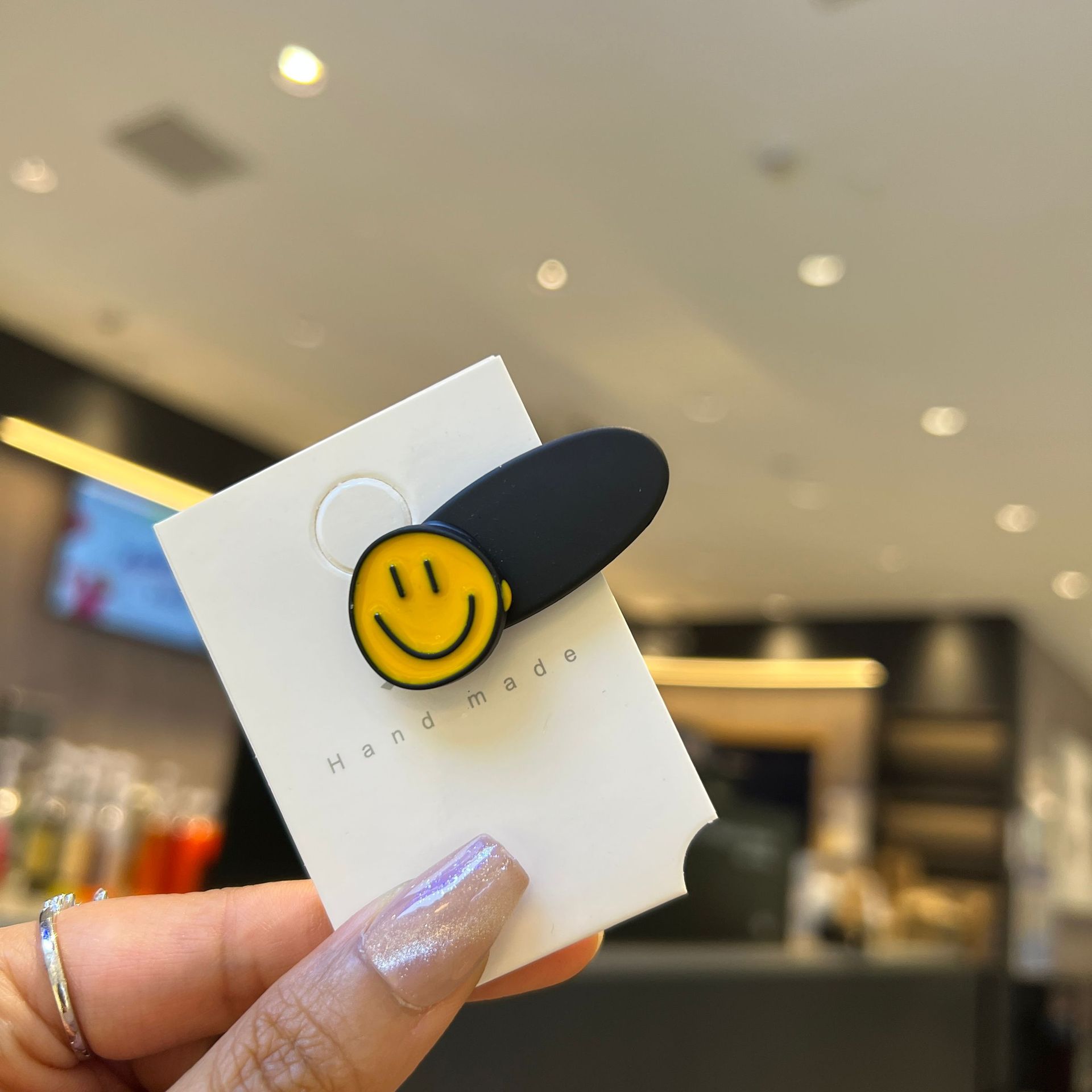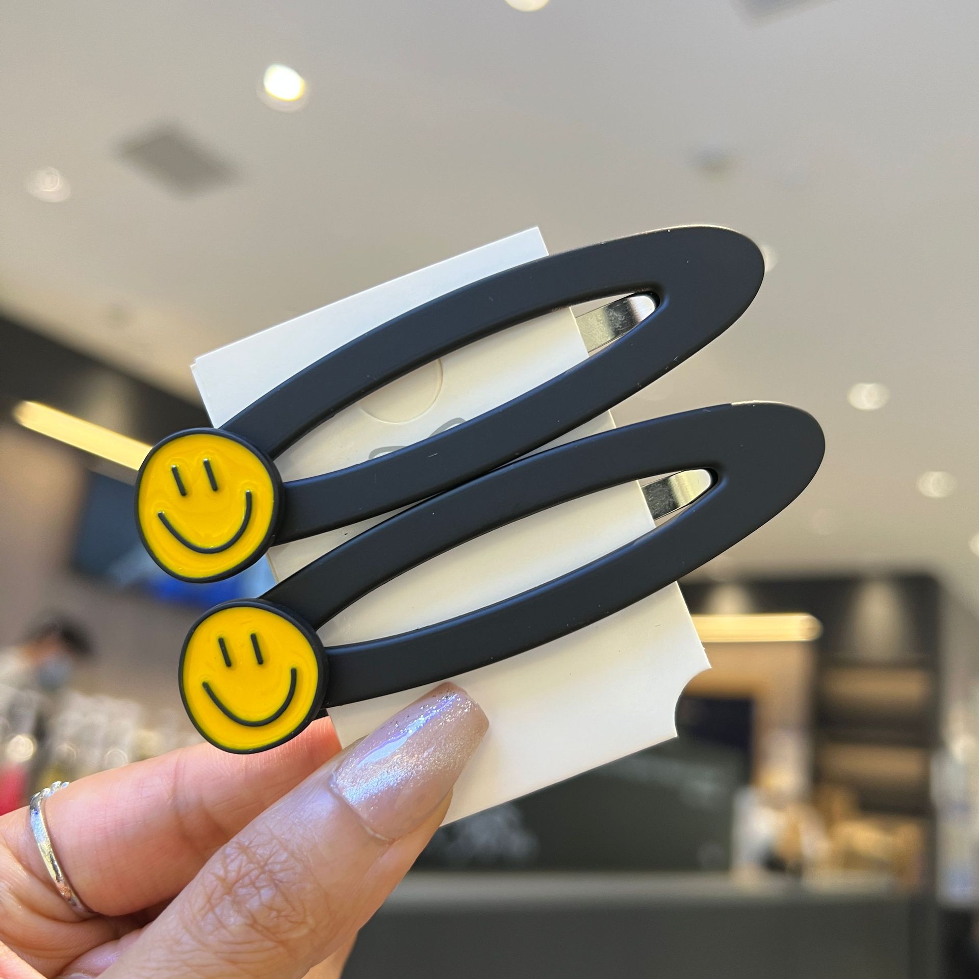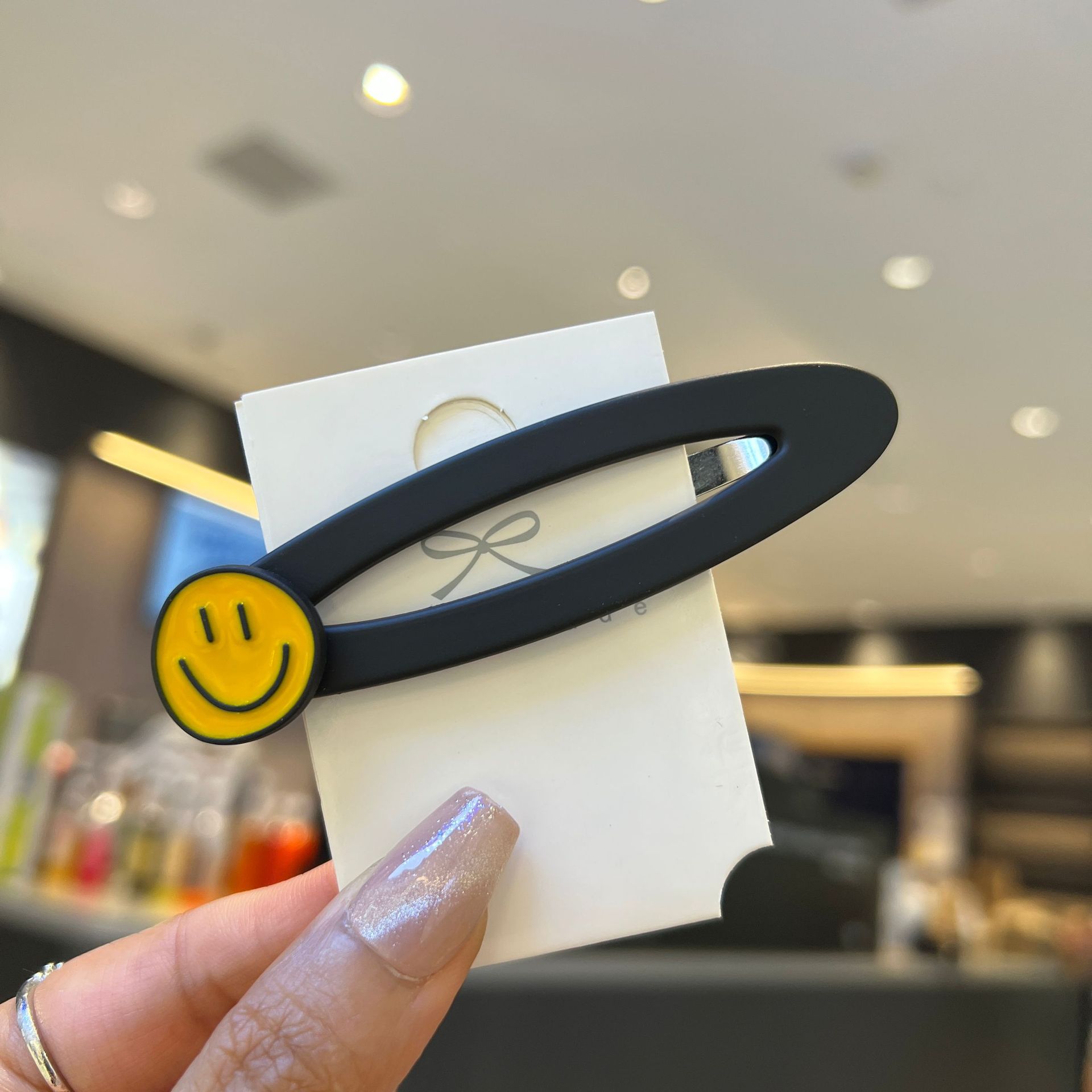 프로스트 블랙 귀여운 스마일리 사이드 클립 간단한 기질 소녀의 머리핀 뒤 머리 깨진 머리핀 탑 클립스토어 가기