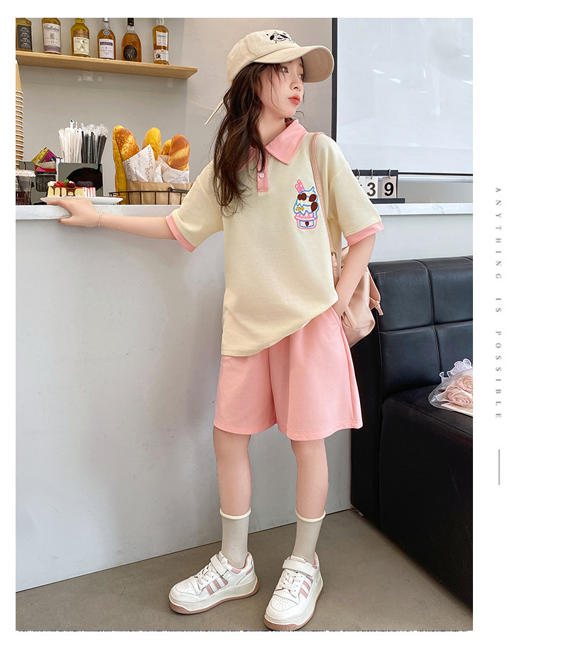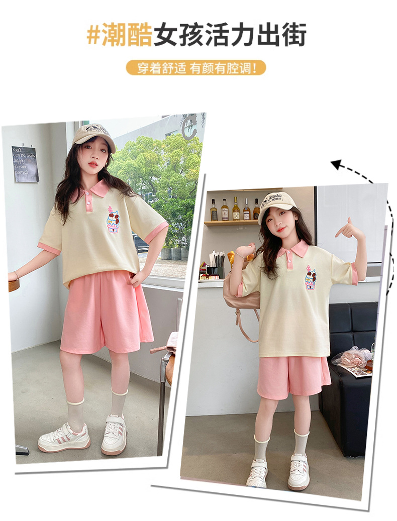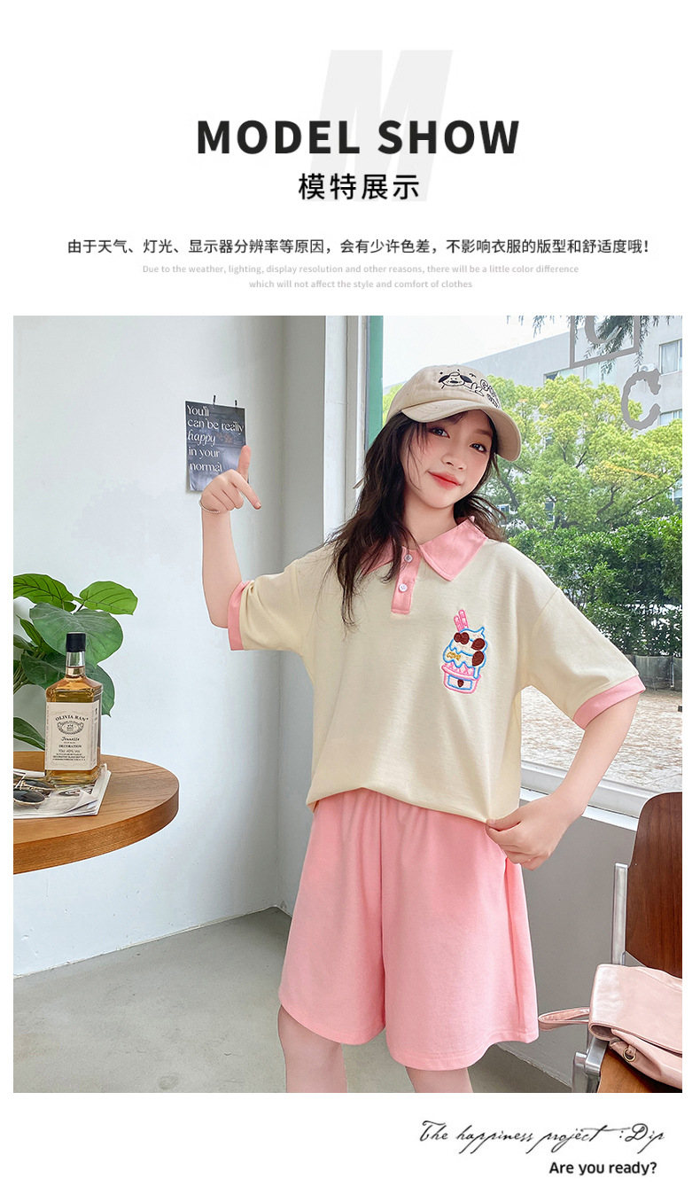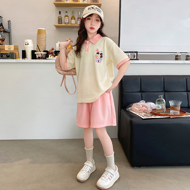 소녀 빅보이 캐주얼 세트 여름 원피스 한국식 외국식 중학생 소녀 POLO 셔츠 인터넷 연예인 프라이드 스트리트 2 피스 여름 세트