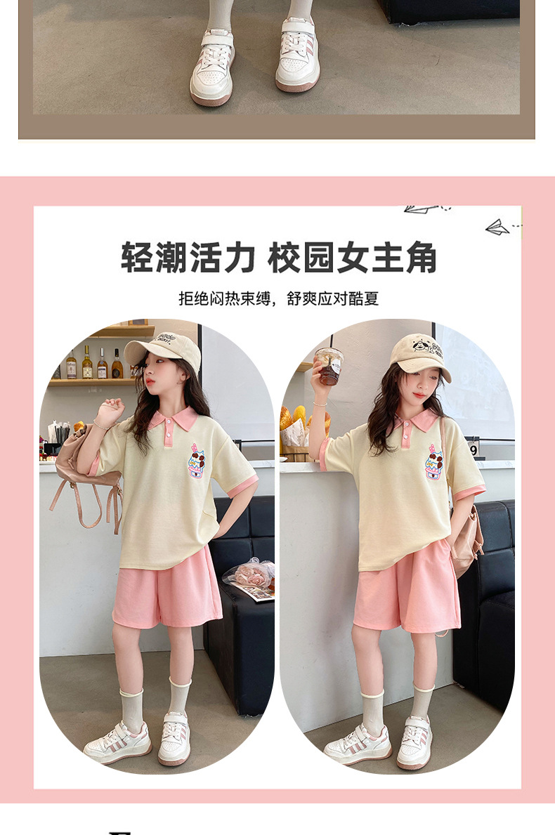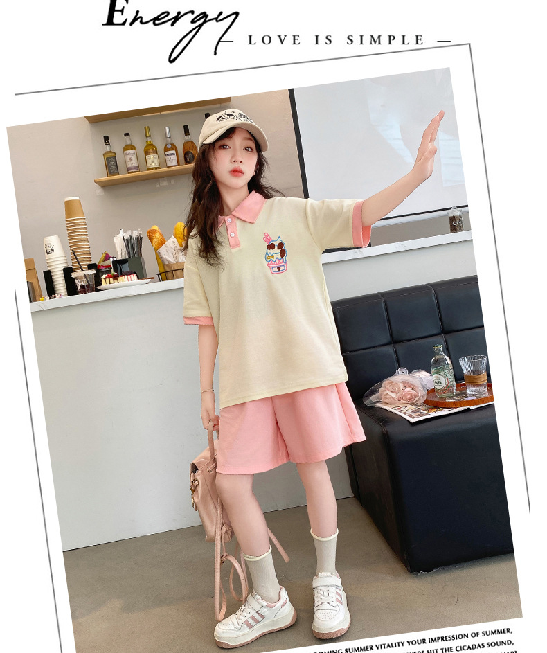 소녀 빅보이 캐주얼 세트 여름 원피스 한국식 외국식 중학생 소녀 POLO 셔츠 인터넷 연예인 프라이드 스트리트 2 피스 여름 세트스토어 가기