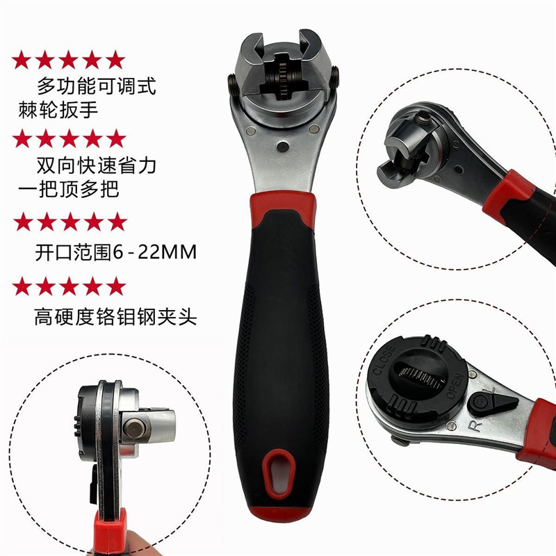 래칫 렌치 가시 렌치 다기능 래칫 렌치가있는 범용 래칫 조절 가능한 렌치 6스토어 가기