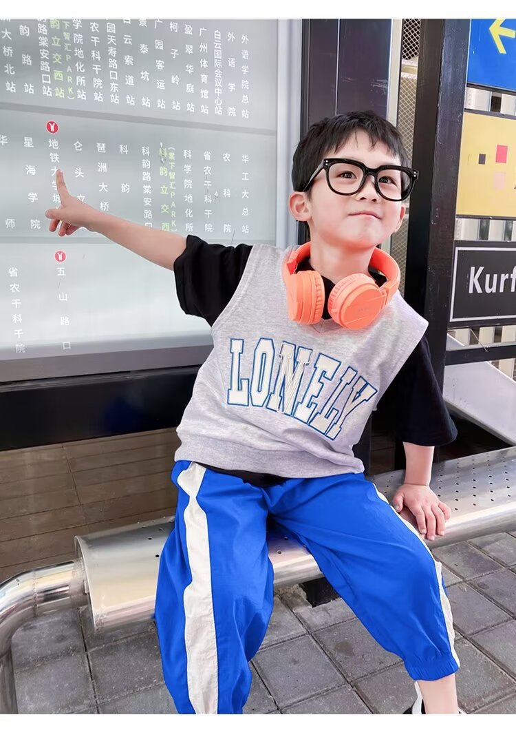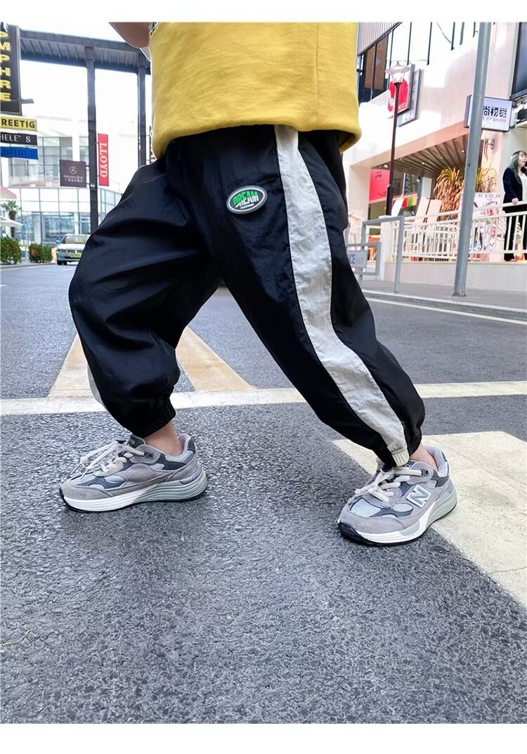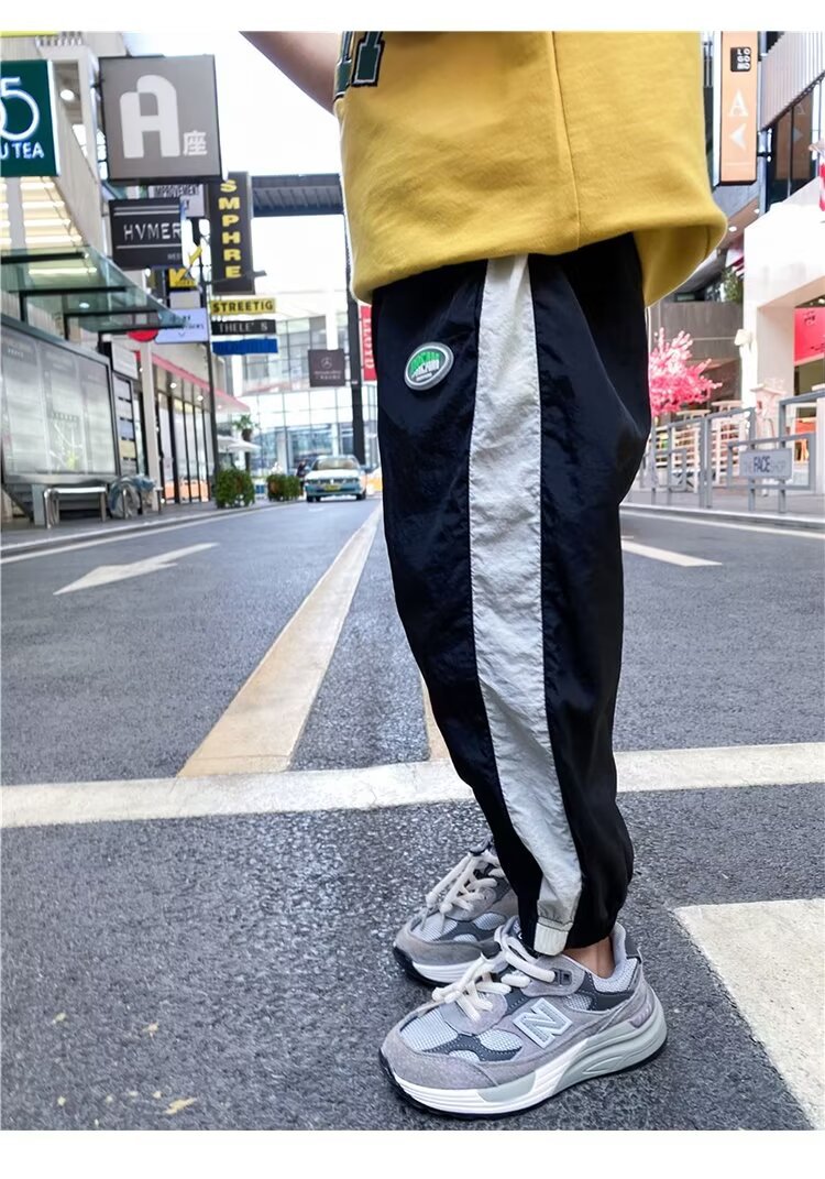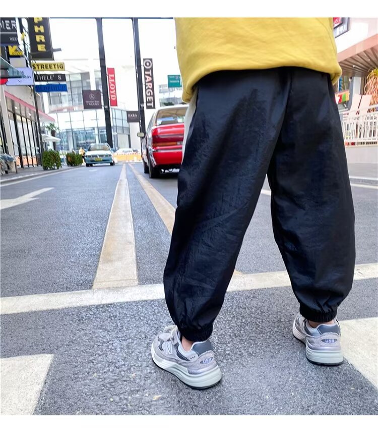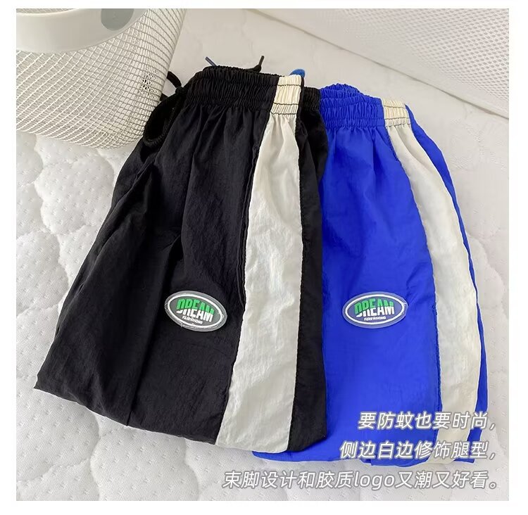 소년의 대비 인쇄 바지 여름 어린이 아이스 실크 바지 소년 느슨한 스포츠 바지 바지 바지 큰 어린이 모기 방지 바지