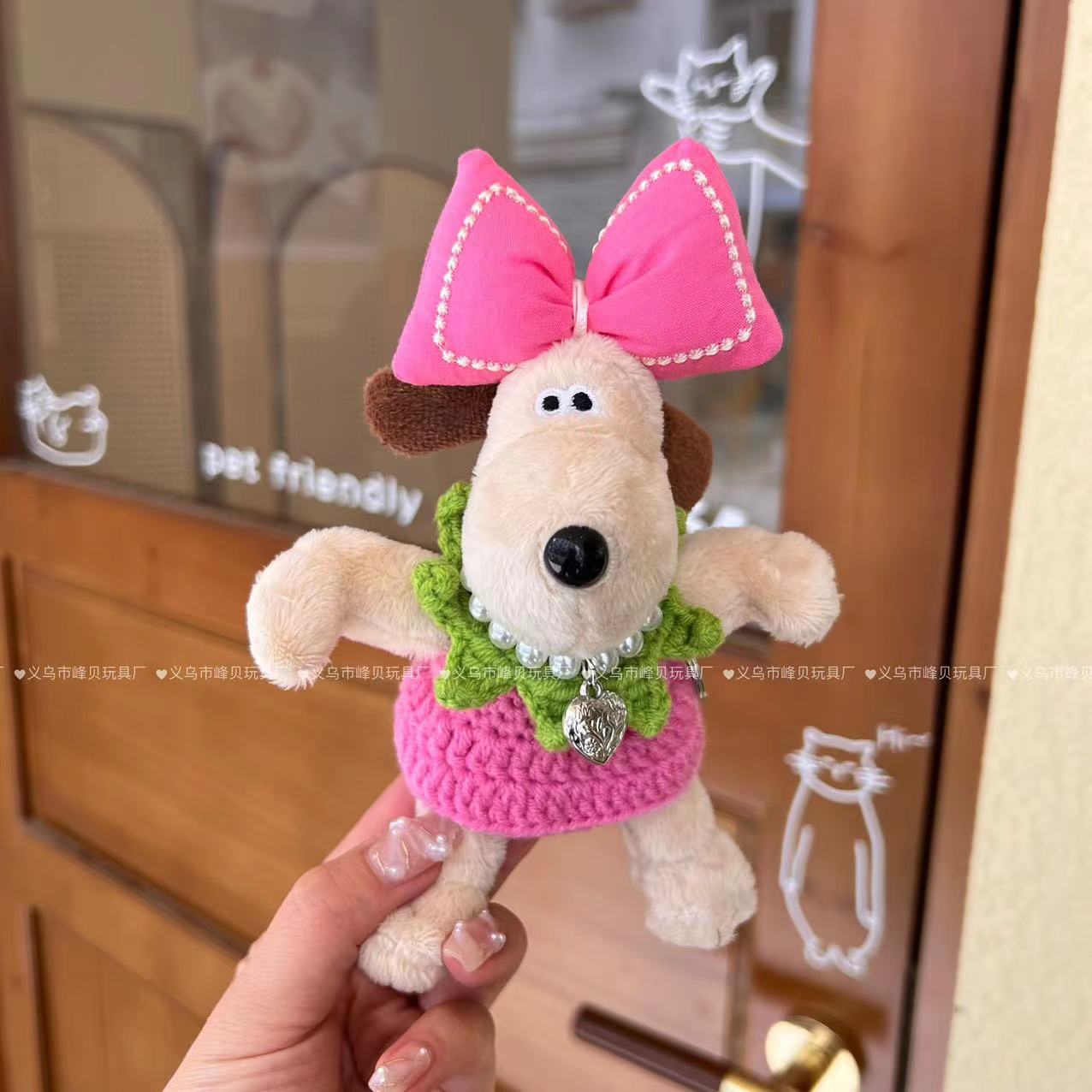 핸드독 대비 컬러 울 스커트 펜던트 수제 니트 의류 한국 스타일 귀여운 봉제 인형 키 체인 선물