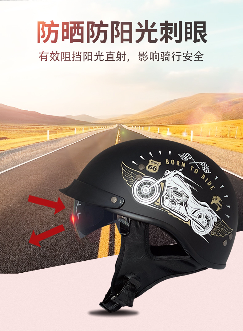 국경 간 배터리 자동차 전기 오토바이 남성과 여성의 사계절 복고풍 내시경 절반 헬멧 성인 페달 오토바이 안전 헬멧스토어 가기