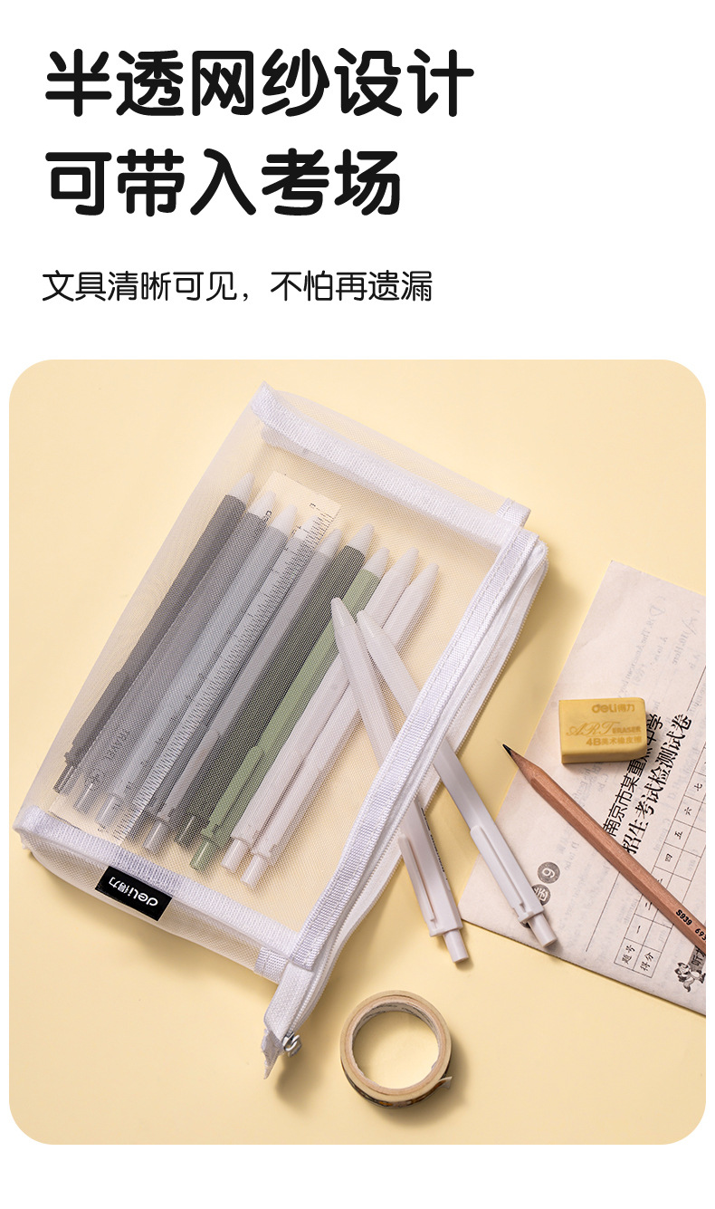 델리 기본 테스트 연필 가방 스테레오 학생 문구 가방 투명 메쉬 연필 가방 높은 색상 값 간단한