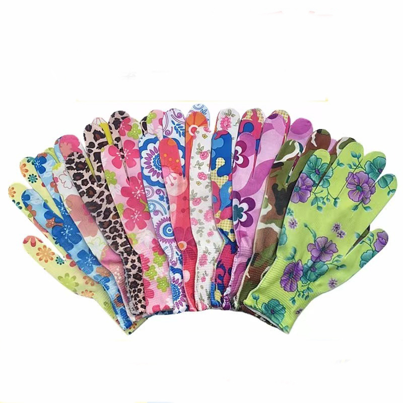 13핀 프린트 무접착 나일론 얇은 장갑, 신축성, 통기성, 자외선 차단 작업 보호 장갑, 컬러풀하고 부드러운 여성용스토어 가기