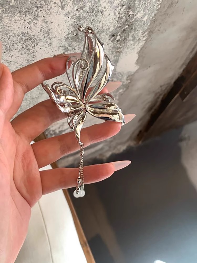 SIZE / 尺寸:展翅双流苏蝴蝶抓夹宽约7.8cm、流苏长约10cm