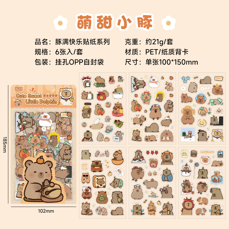돌고래 전체 행복 카피발라 방수 애완 동물 손 계정 스티커 어린이 여성 귀여운 스티커 만화 손 계정 DIY 소재스토어 가기