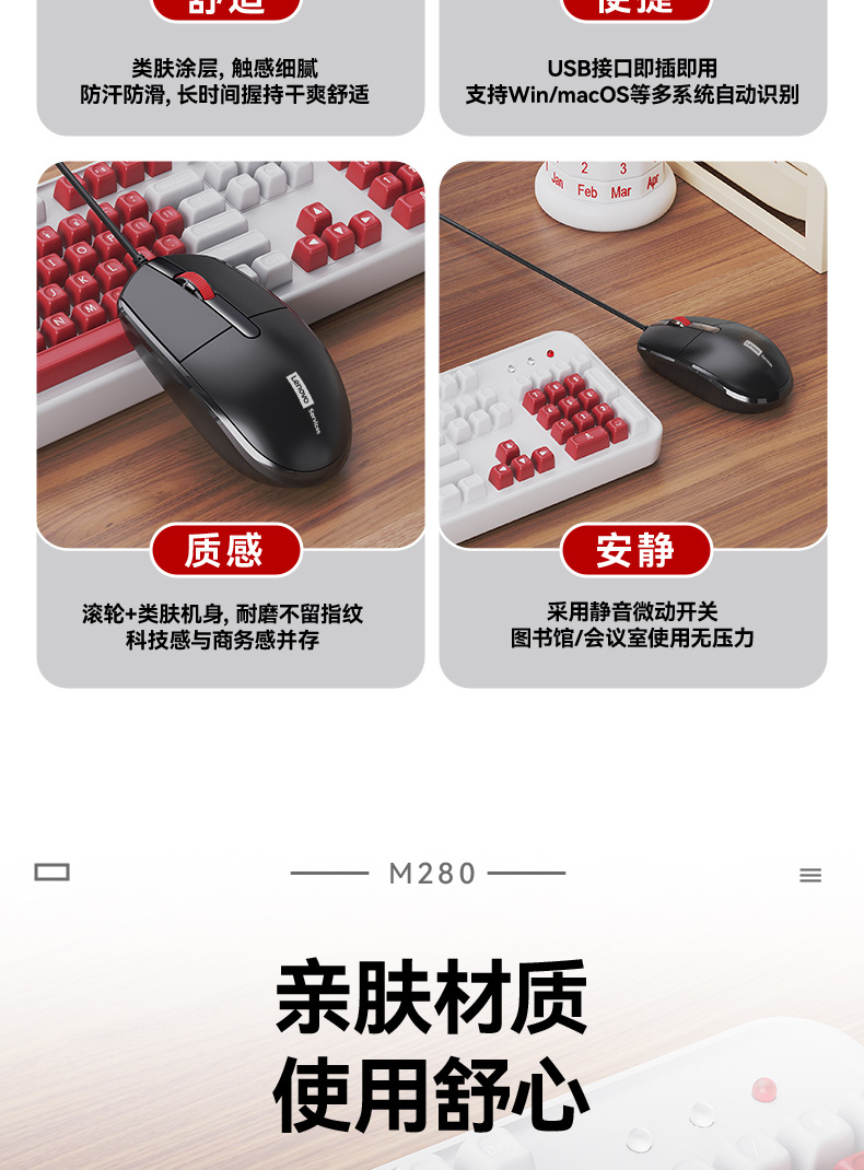 M280 유선 마우스 비즈니스 오피스 데스크탑 노트북 USB 범용 무소음 재고 도매스토어 가기