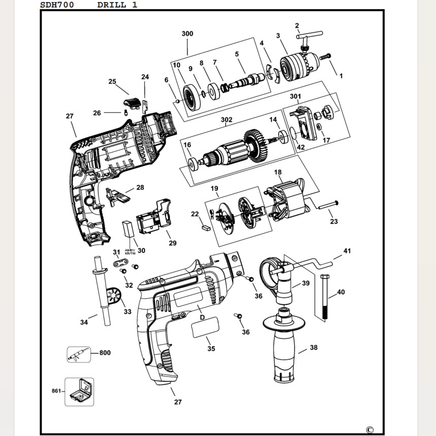 스탠리 SDH700 손 전기 드릴 속도 제어 충격 드릴 드라이버 액세서리 드릴 척 고정자 스위치 로터 키