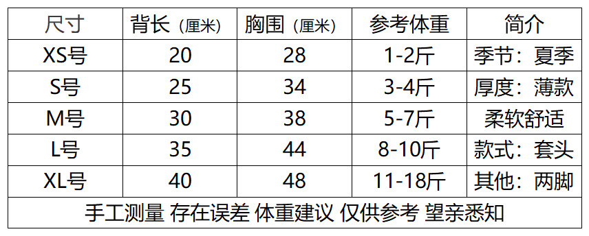 • XS 등길이 20cm (권장 0.5-1.0kg )