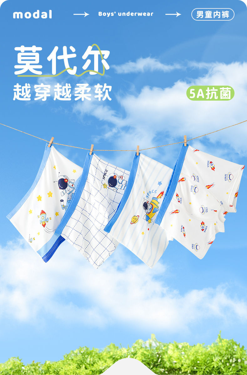 남학생 속옷 모달 여름 얇은 통기성 어린이 복서 반바지 대형 어린이 만화 우주 비행사 복서 반바지스토어 가기