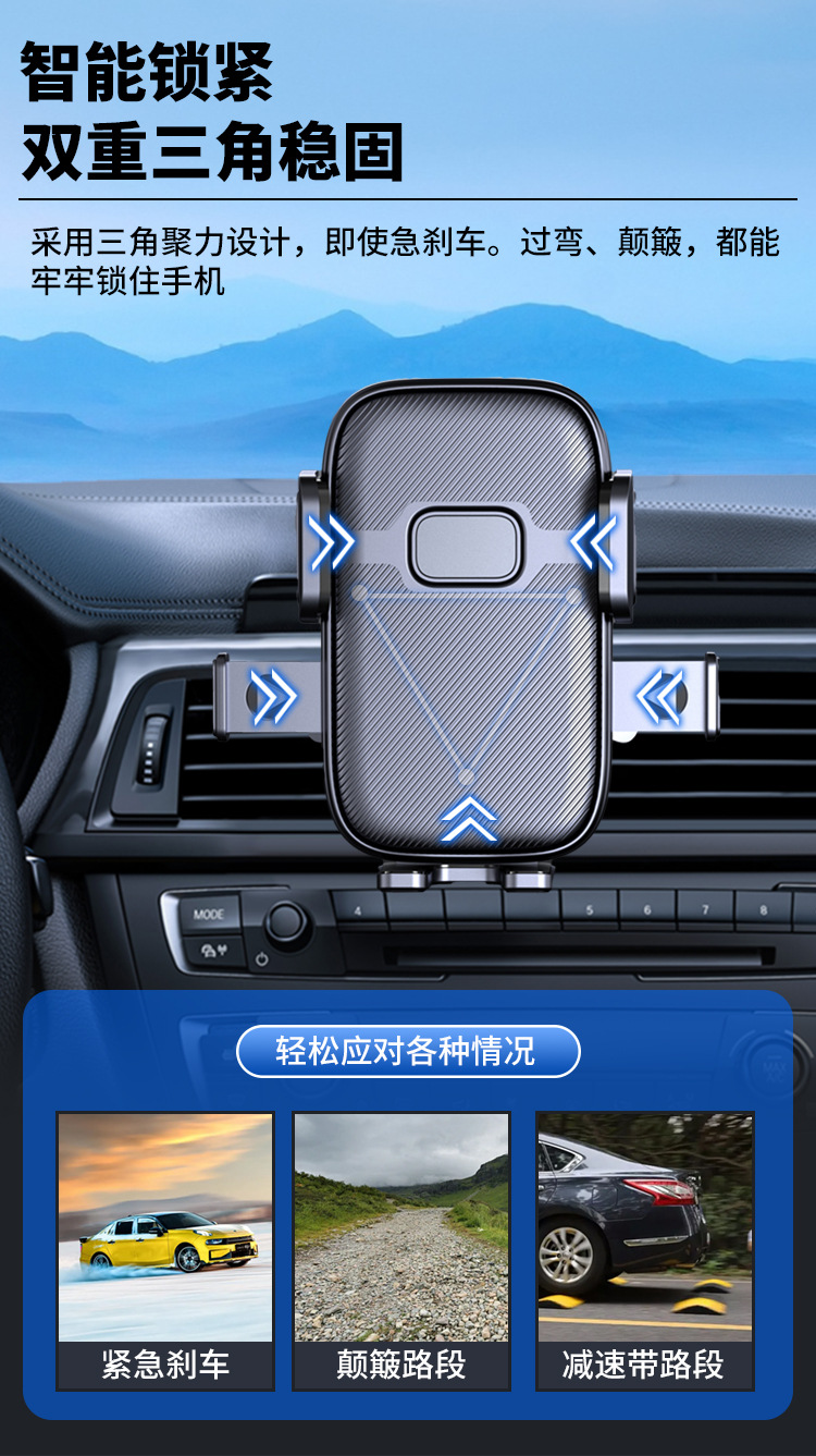 새로운 자동차 에어 콘센트 휴대 전화 브래킷 삼각형 잠금 후크 미끄럼 방지 안정적인 회전 조정 자동차 내비게이션 브래킷