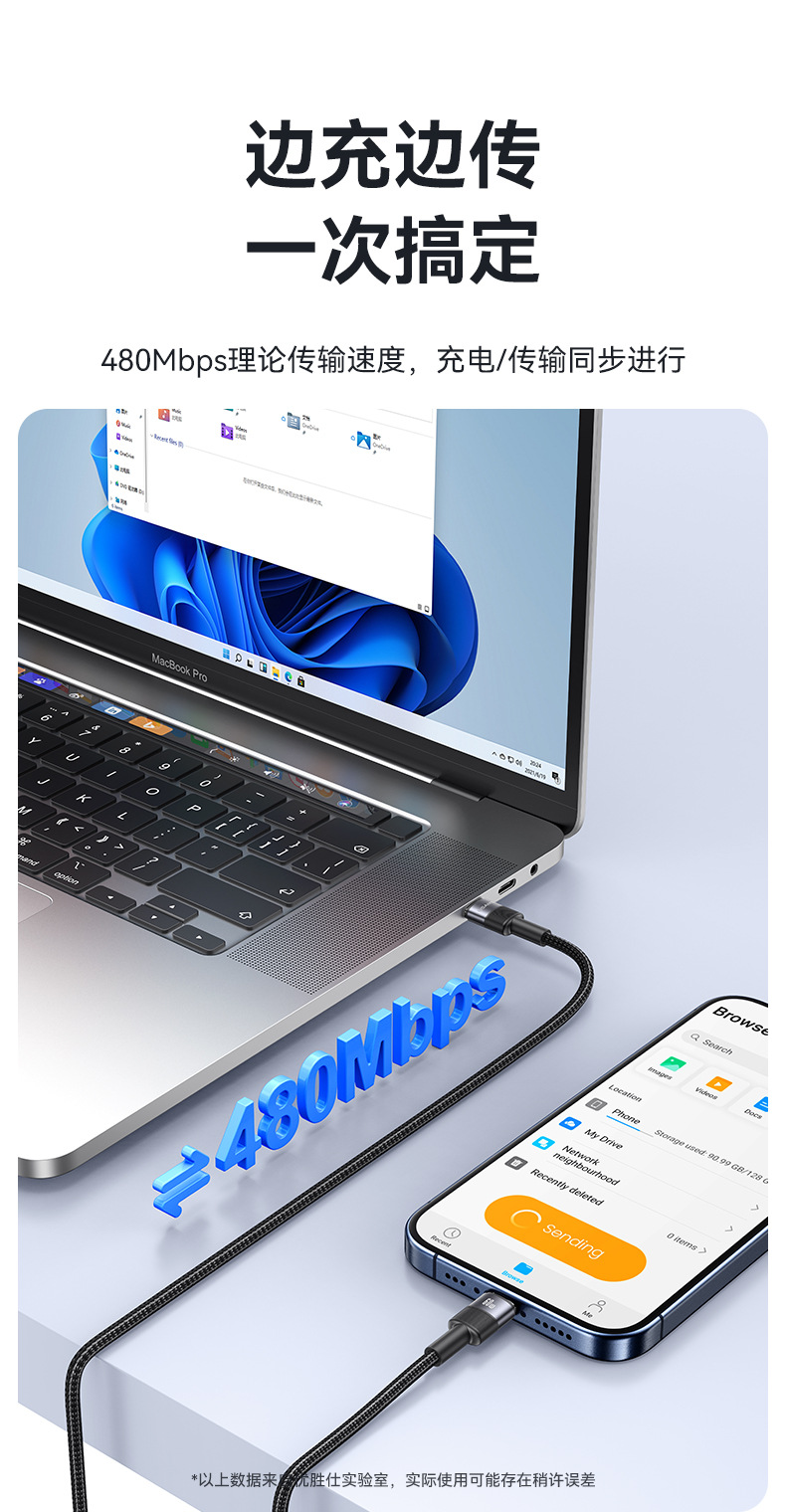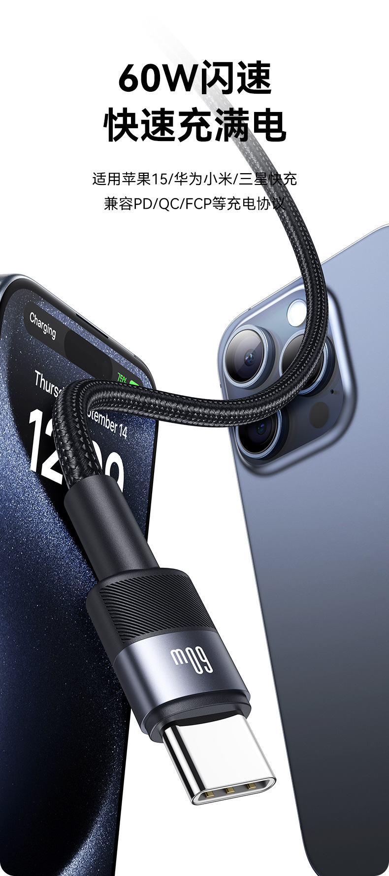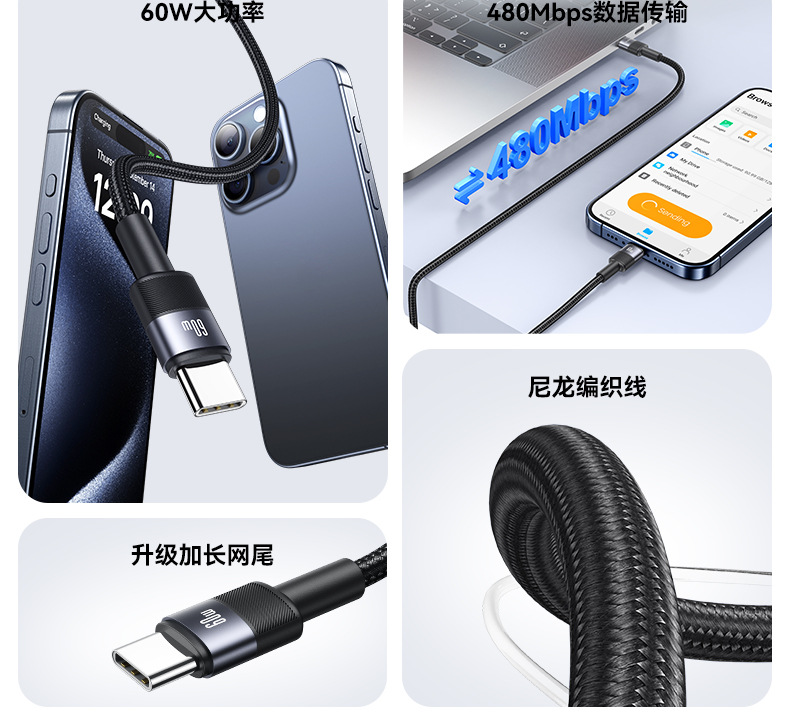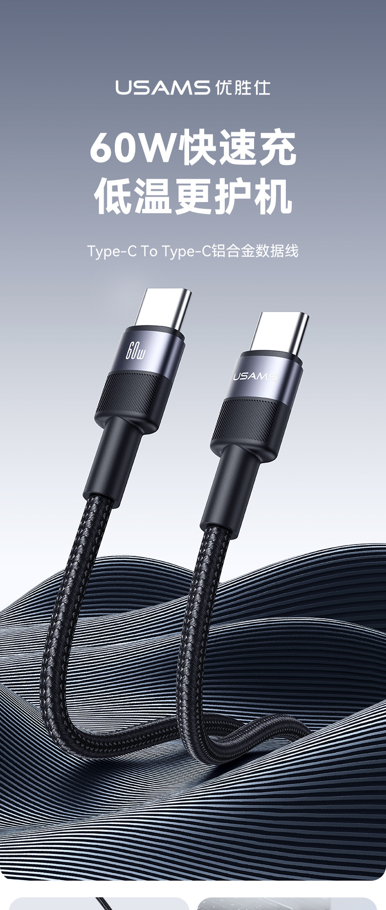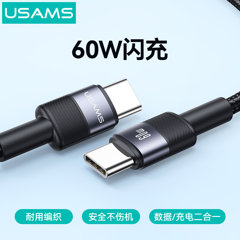USAMS 60W 더블 헤드 타입 데이터 케이블 애플 15 빠른 충전 iPhone15Pro 휴대 전화 충전 라인스토어 가기