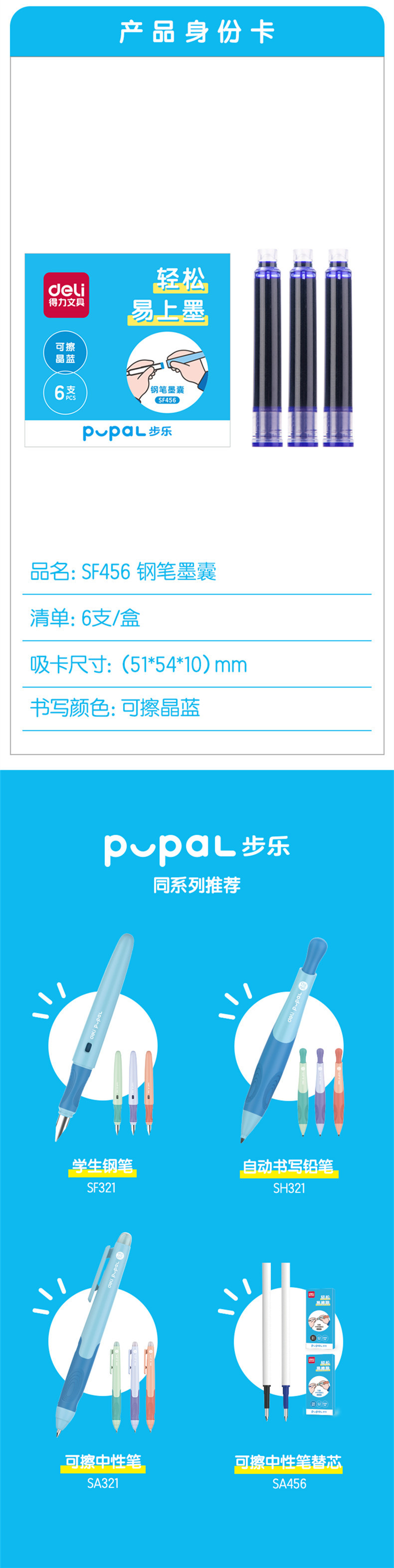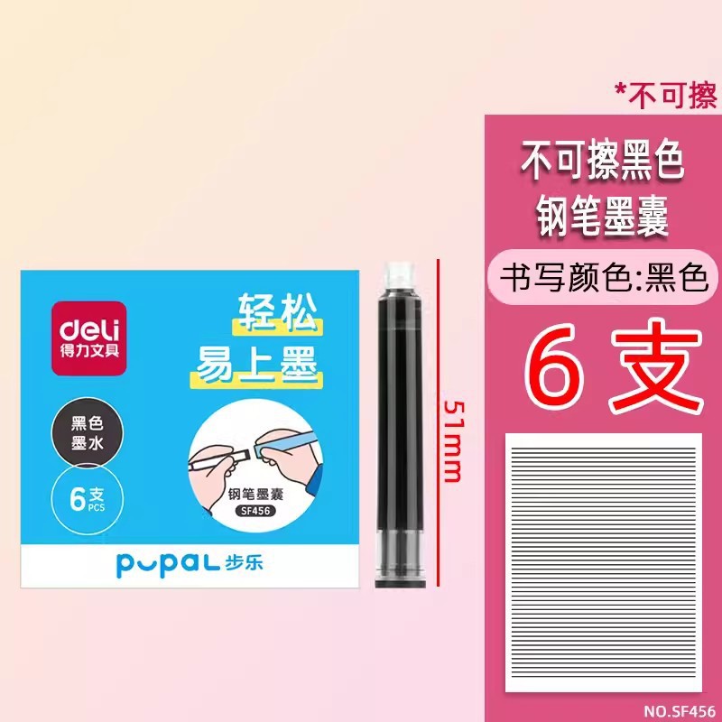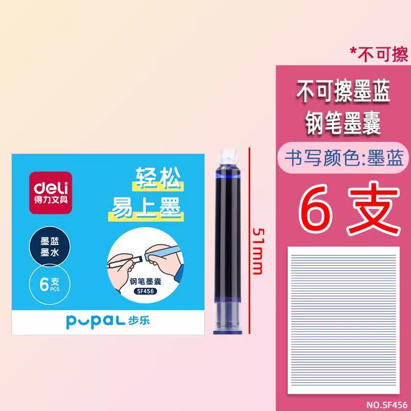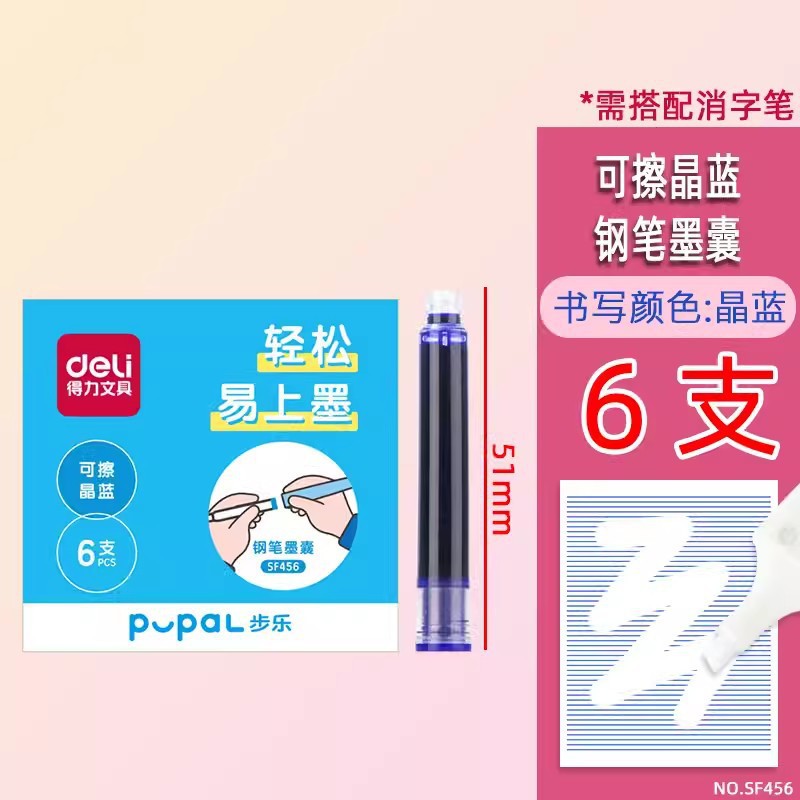 델리 SF456 Bule 펜 잉크 sac 잉크 지울 수있는 순수한 파란색 학생 쓰기 연습 펜 교체 가능한 잉크 담낭스토어 가기