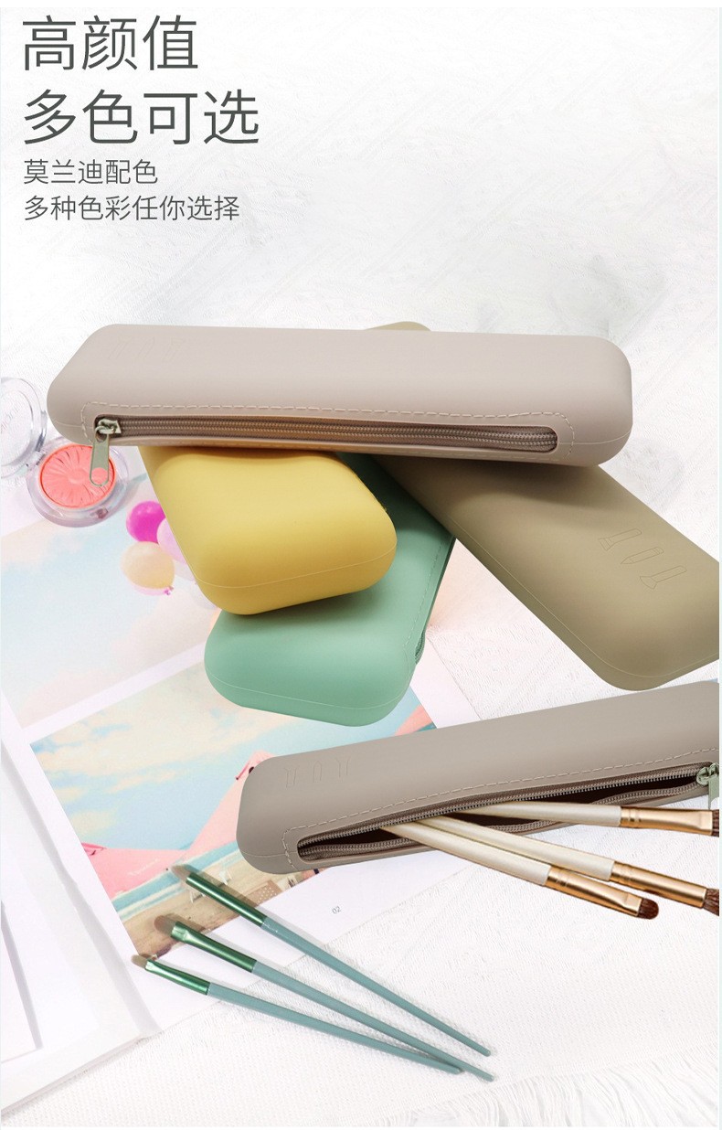 도매 메이크업 브러쉬 보관 가방 휴대용 실리콘 지퍼 뷰티 보관 가방 학생용 직사각형 필통 다용도