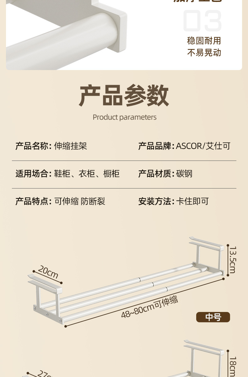 • 건그레이 대형 수납식(길이 40-80cm, 폭 27cm)