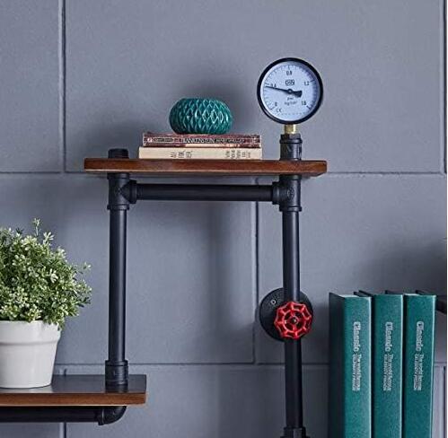 북유럽 미국 스타일 단철 물 파이프 복고풍 산업 벽 선반 단단한 나무 파티션 벽 걸이 벽 책장스토어 가기