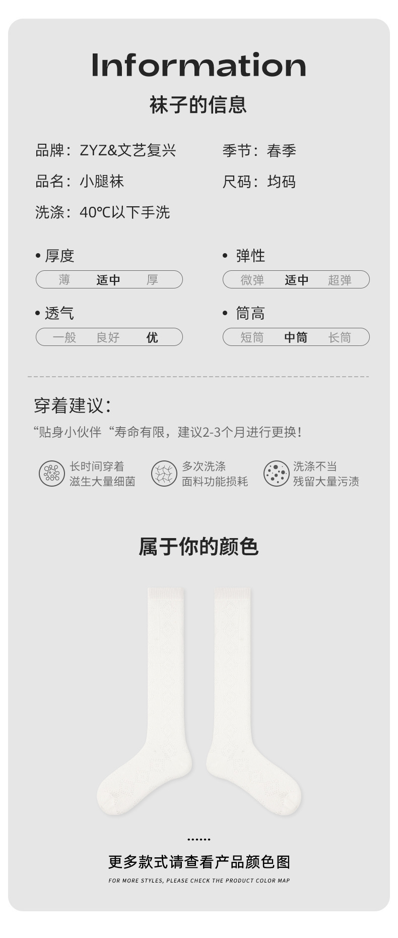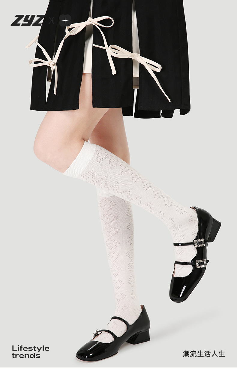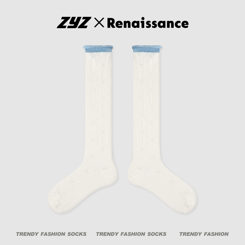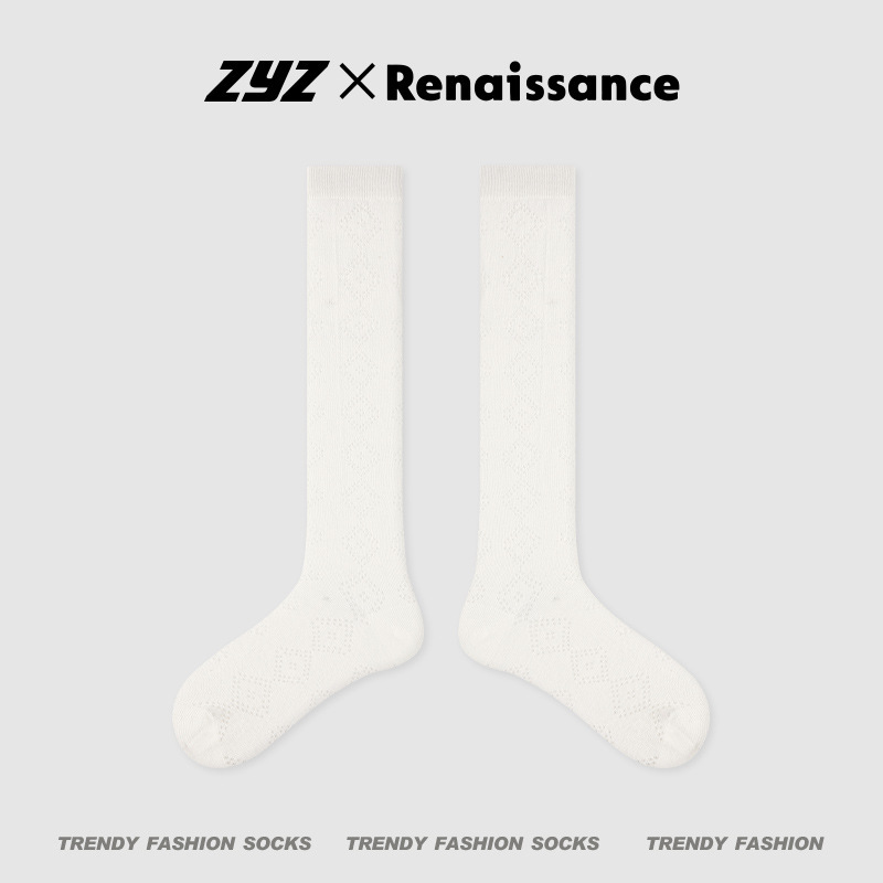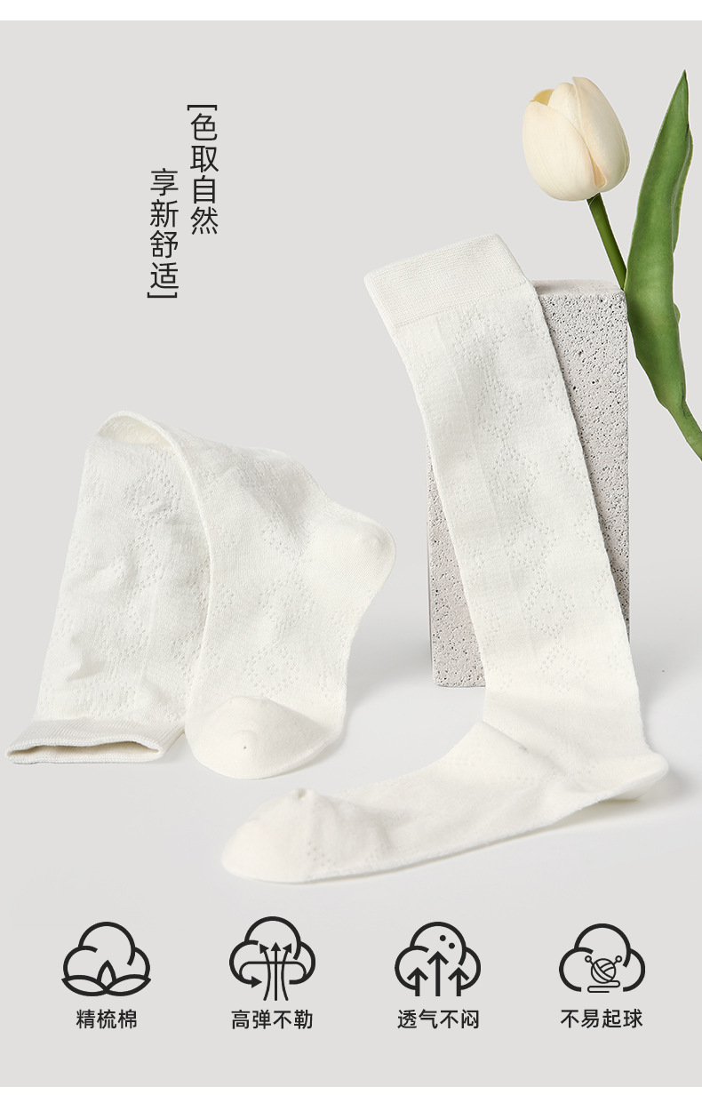르네상스 오리지널 여성용 양말 봄과 여름 Rhomboid Mesh Cub 양말 순수 화이트 인 통기성 안티 모기 미드 양말스토어 가기