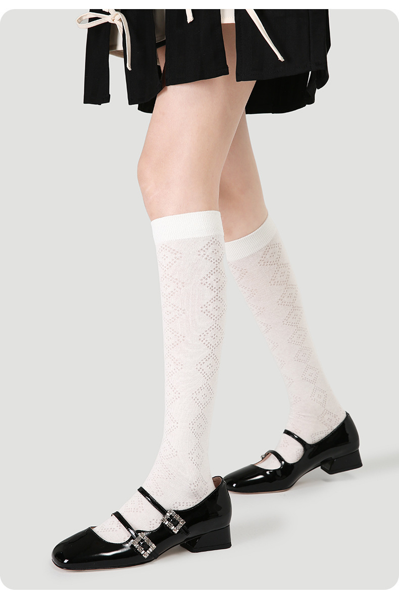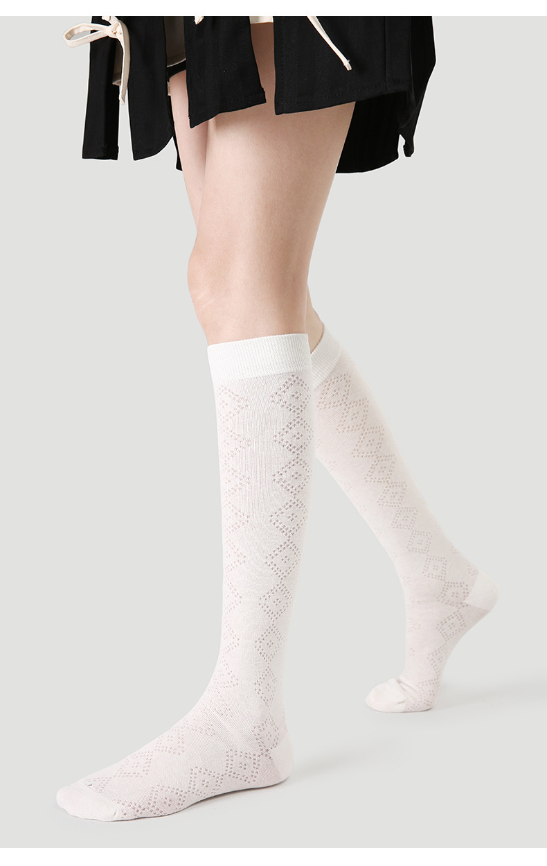 르네상스 오리지널 여성용 양말 봄과 여름 Rhomboid Mesh Cub 양말 순수 화이트 인 통기성 안티 모기 미드 양말