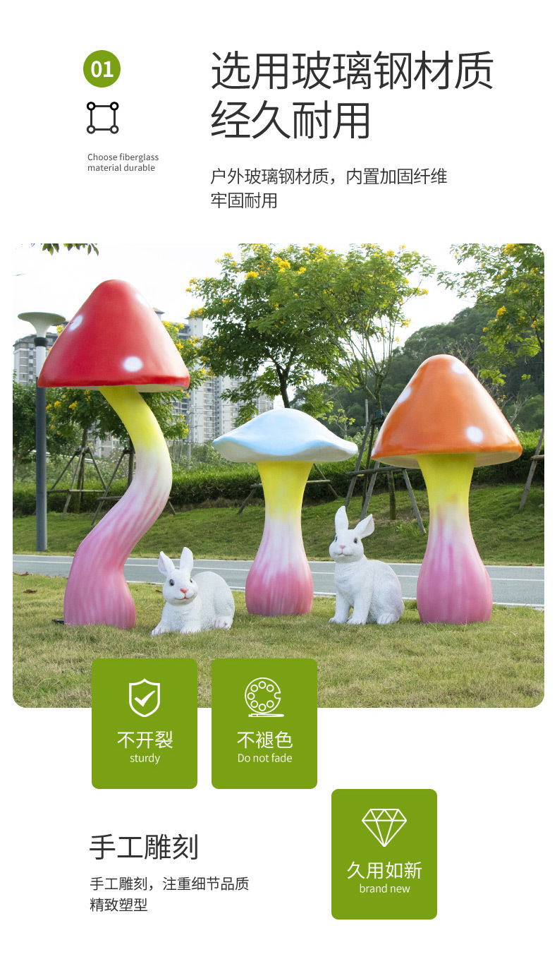공원 숲 시뮬레이션 버섯 조각 정원 장식 안뜰 토끼 장식품 잔디 유리 섬유 강화 플라스틱 동물 풍경스토어 가기