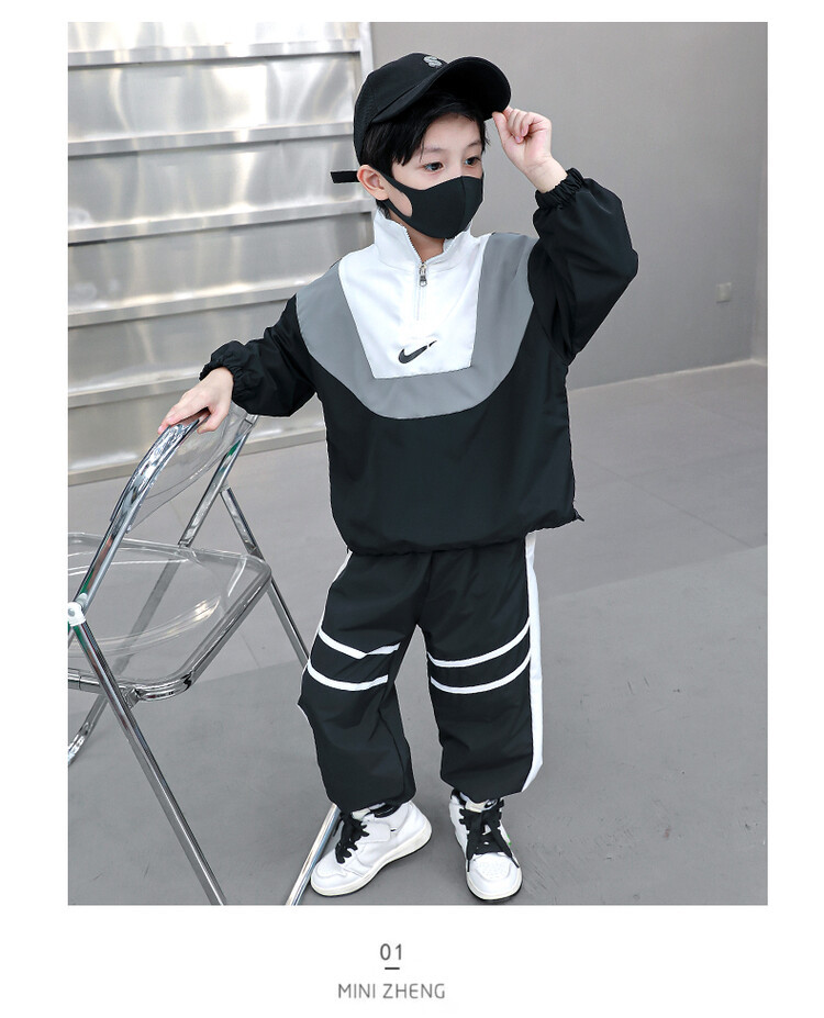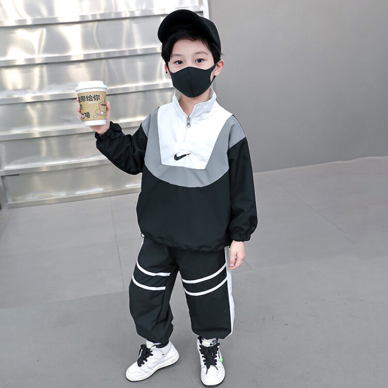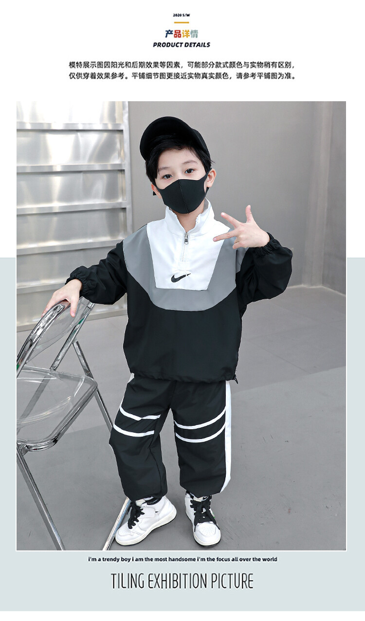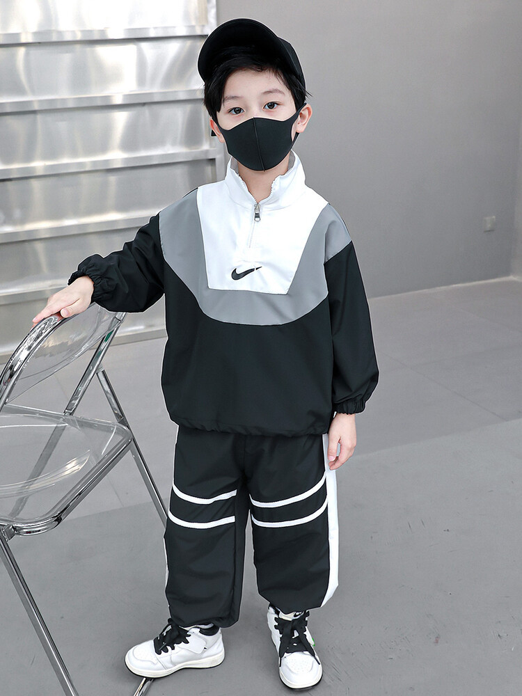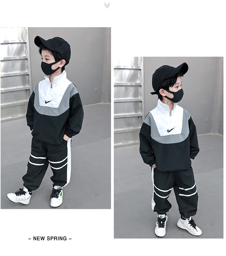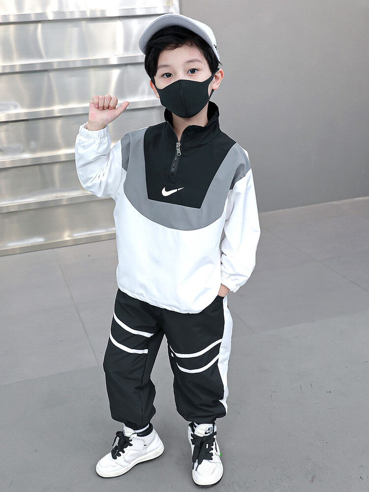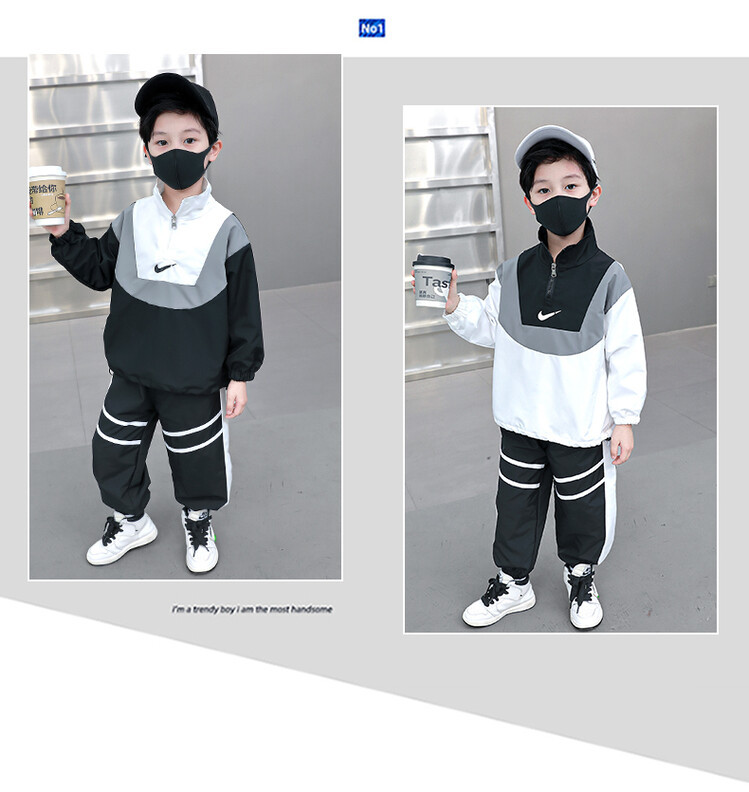 아동 가을 신상 남아 정장 세트, 중대형 아동용 세련된 남아 봄 가을 배색 투피스 스포츠 수출용스토어 가기