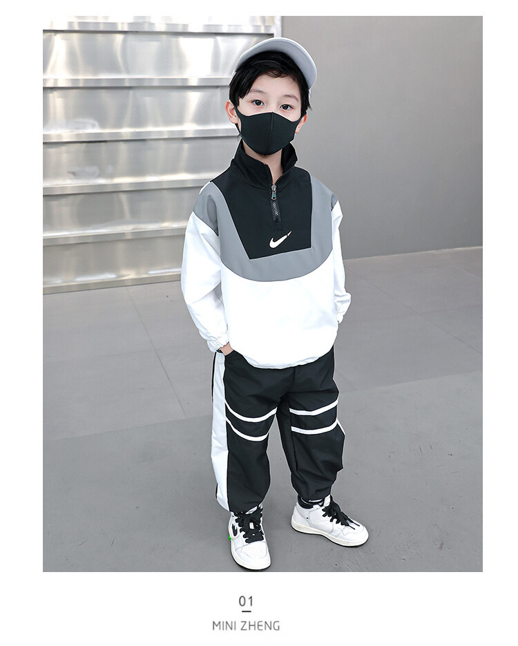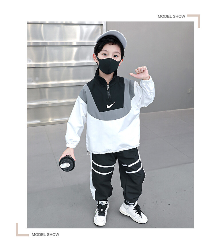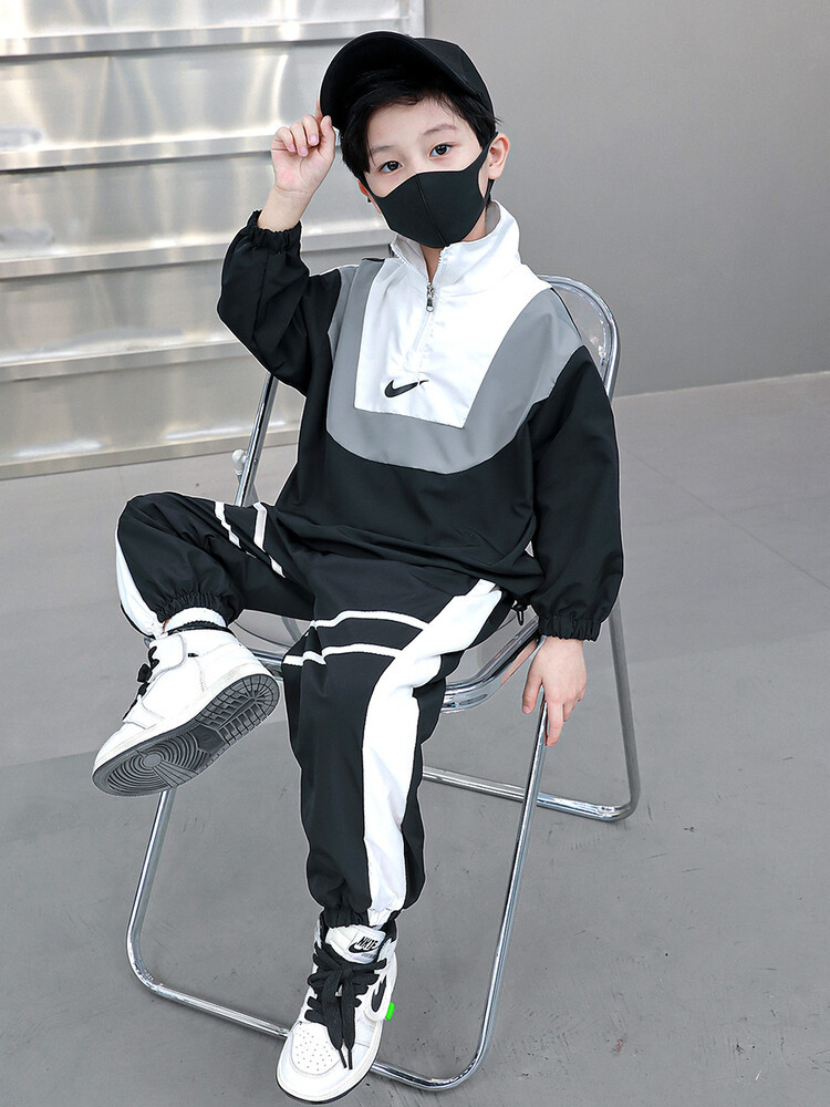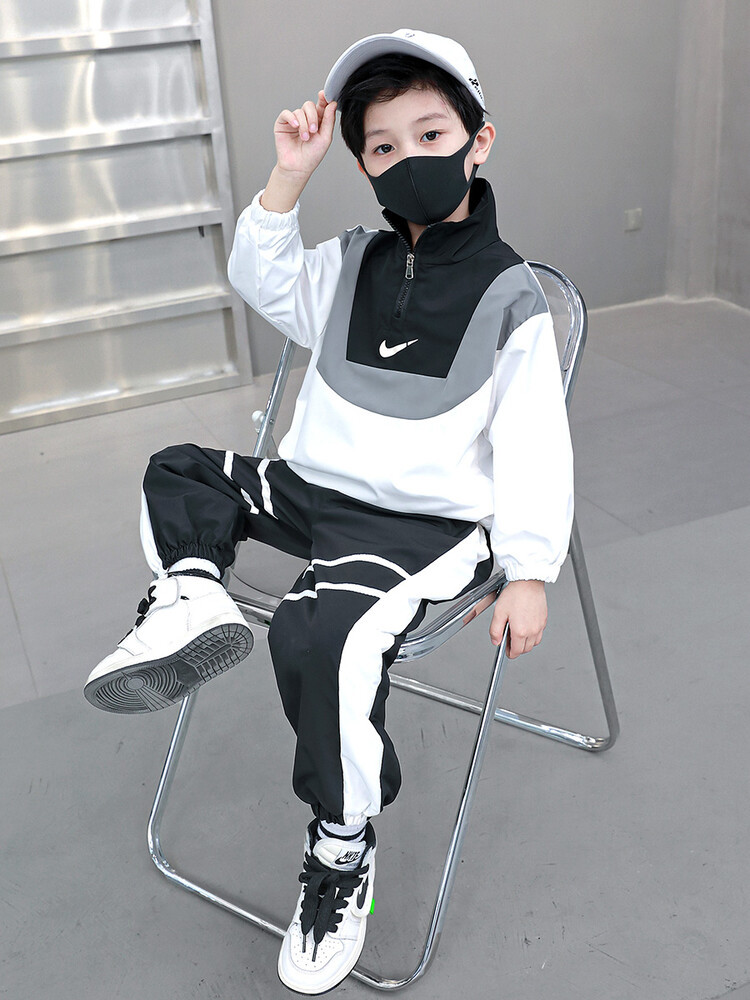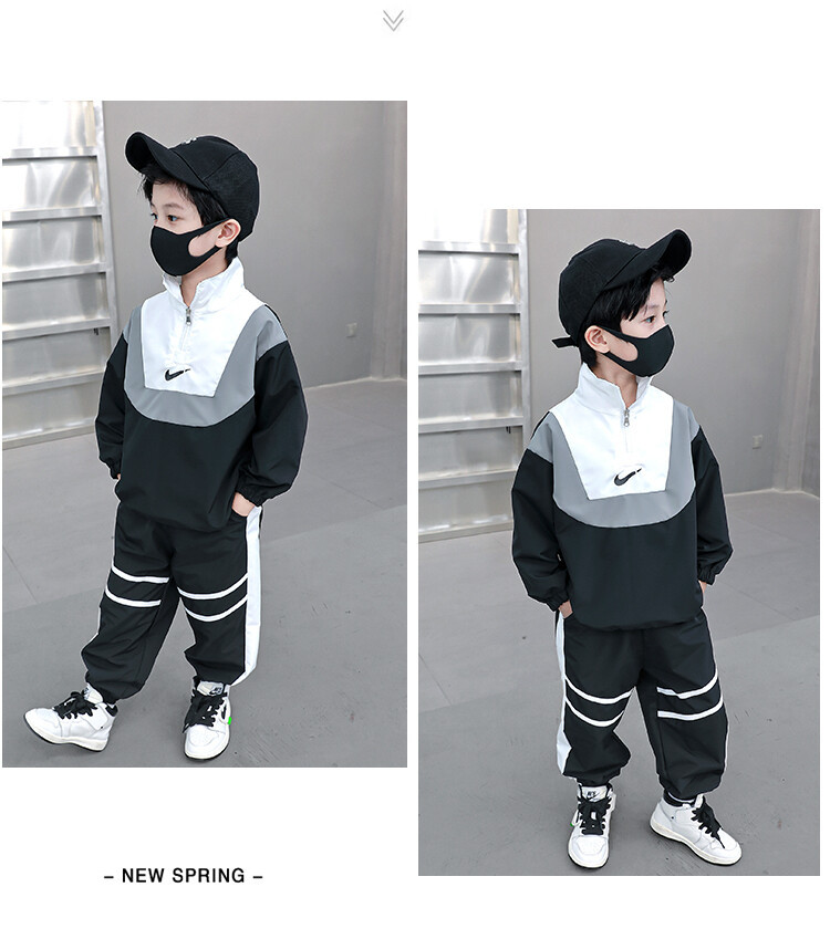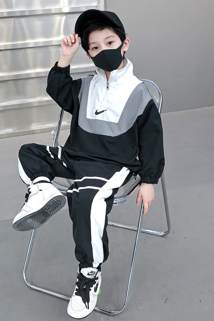 아동 가을 신상 남아 정장 세트, 중대형 아동용 세련된 남아 봄 가을 배색 투피스 스포츠 수출용스토어 가기