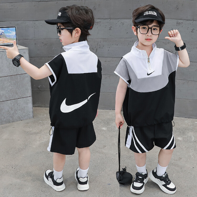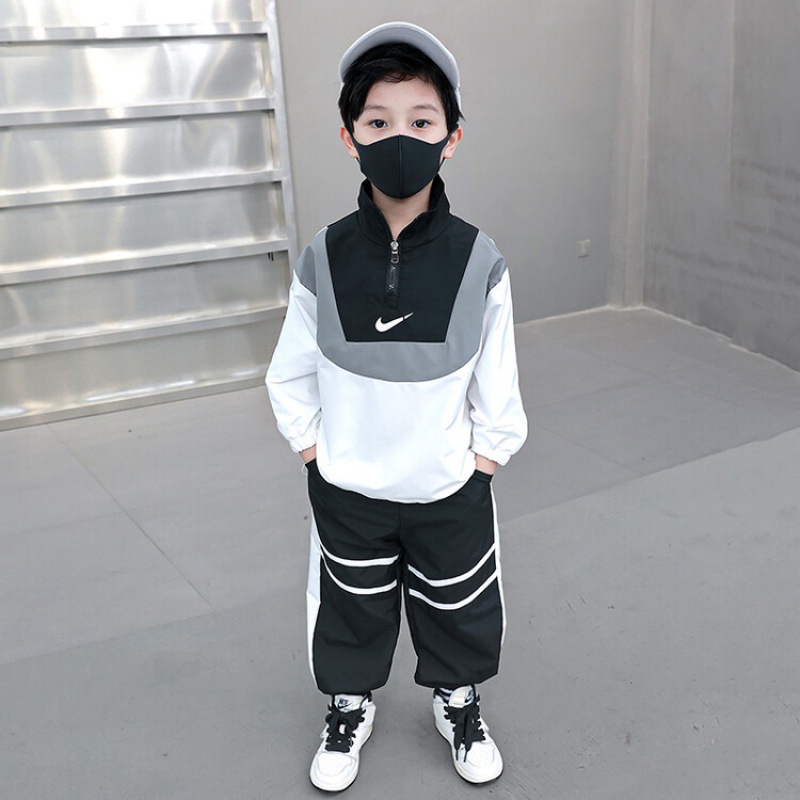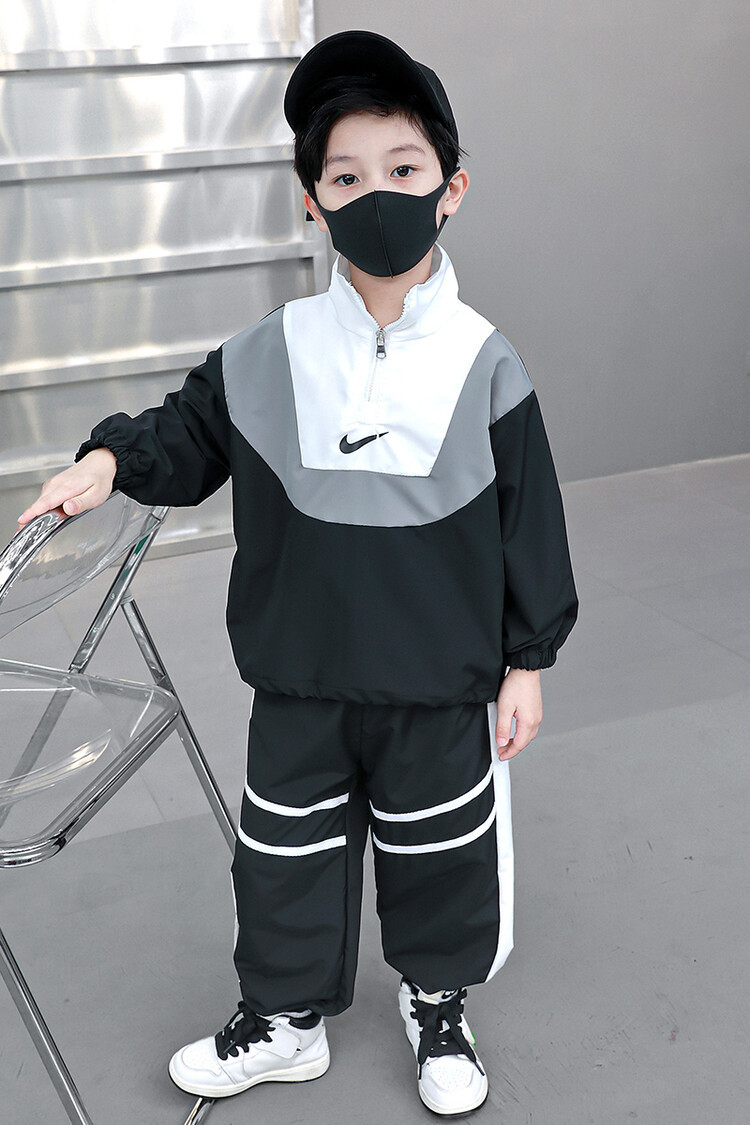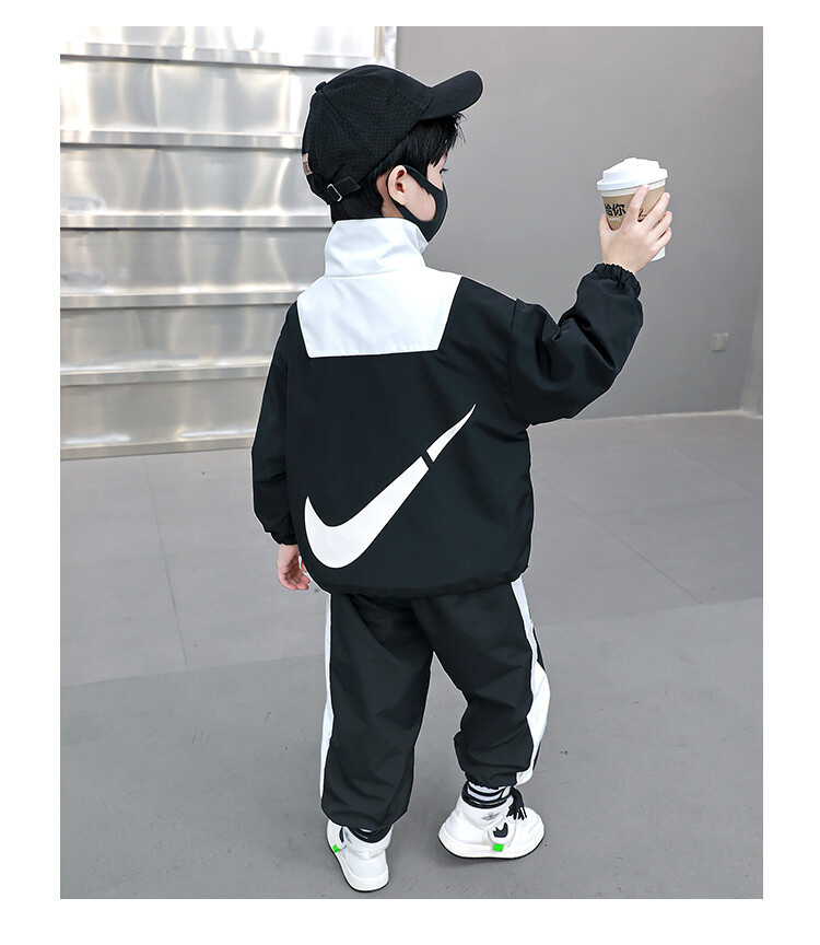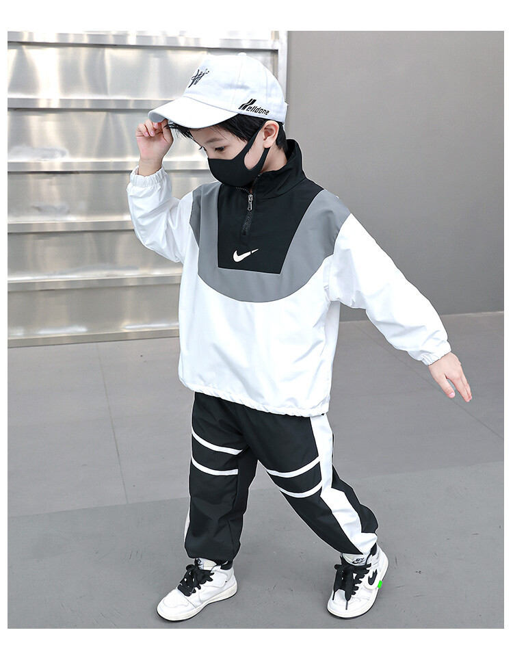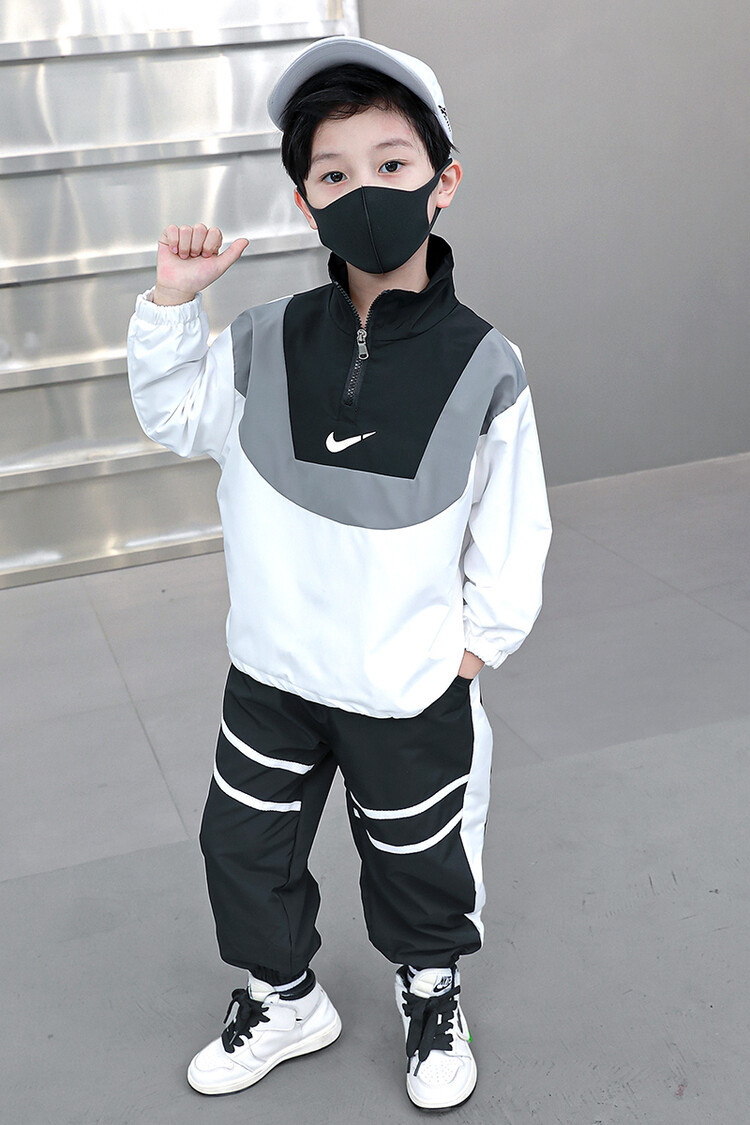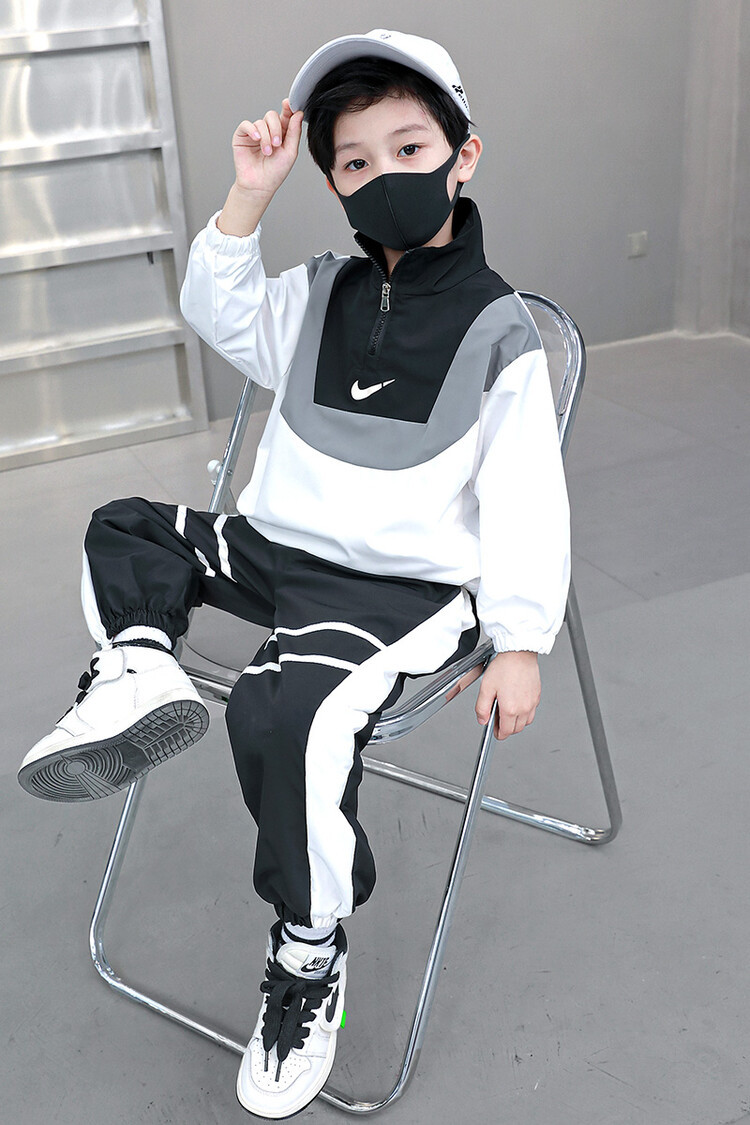 아동 가을 신상 남아 정장 세트, 중대형 아동용 세련된 남아 봄 가을 배색 투피스 스포츠 수출용스토어 가기