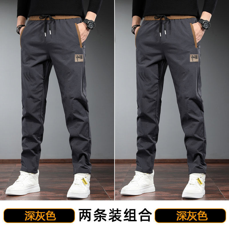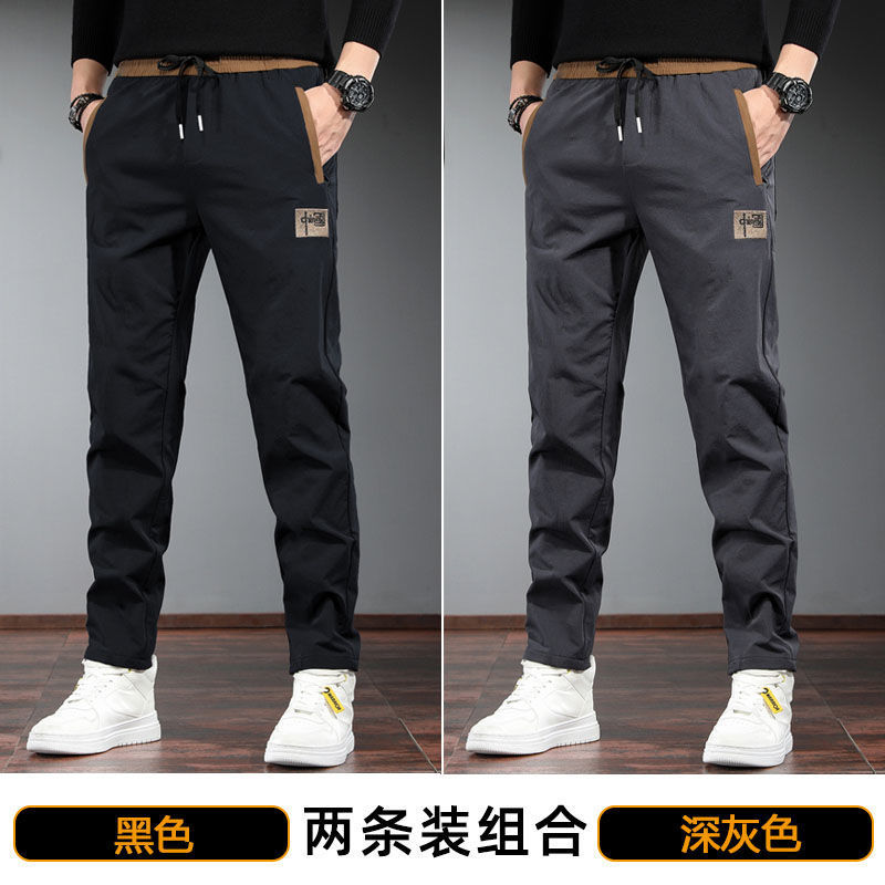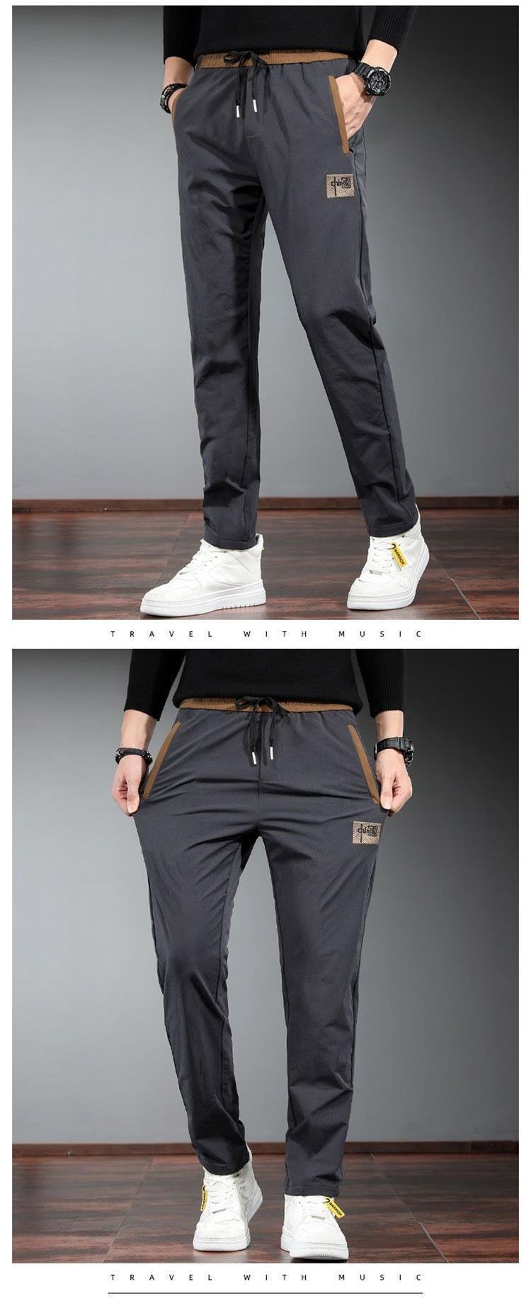 캐주얼 바지 남자 봄 새로운 높은 탄성 느슨한 스트레이트 바지 여름 얇은 빠른 건조 아이스 실크 바지스토어 가기