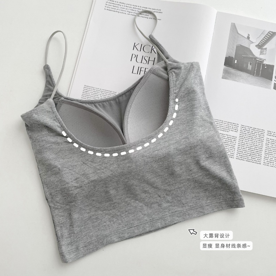 新品法式蕾丝V领螺纹带杯背心女细肩带磨毛亲肤保暖修身显瘦吊带