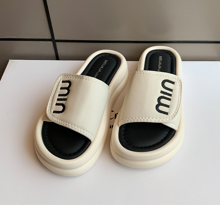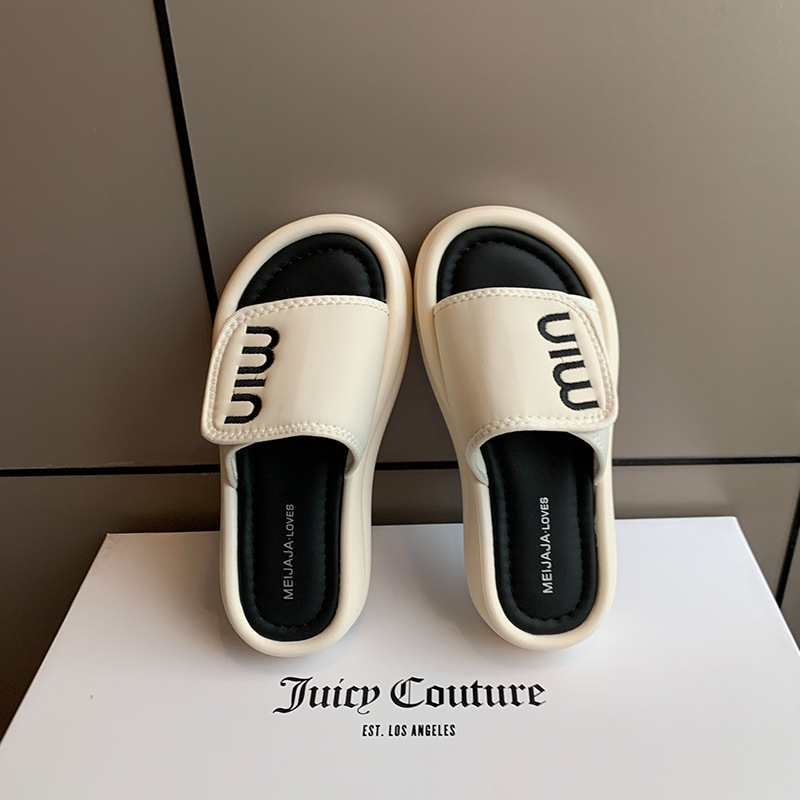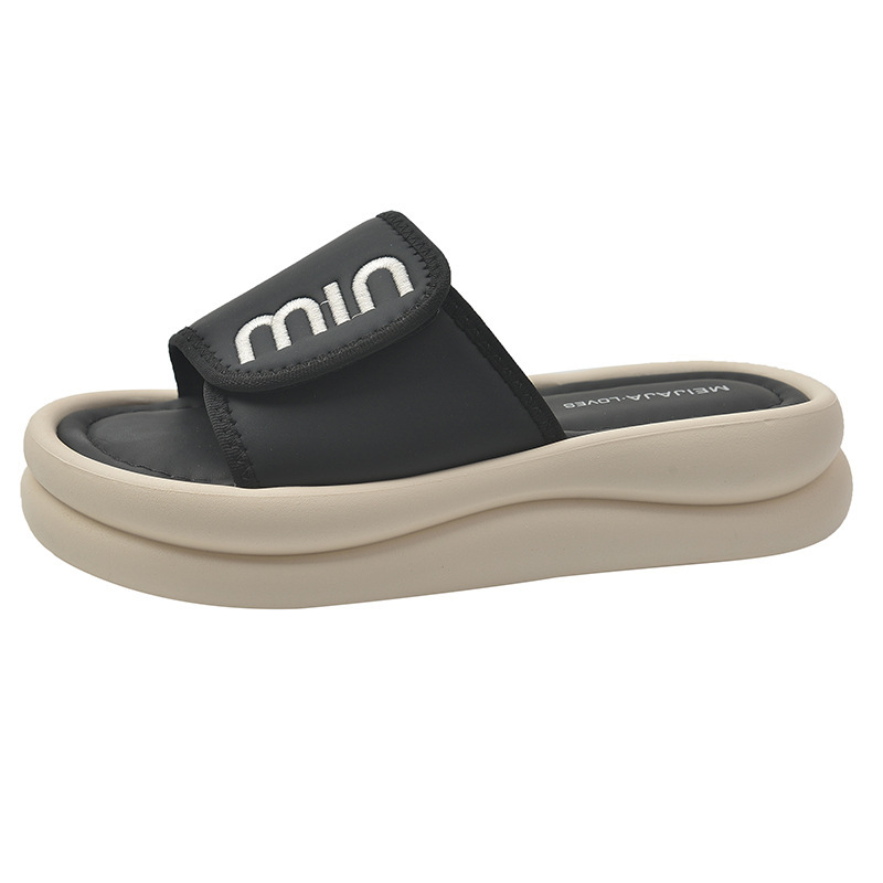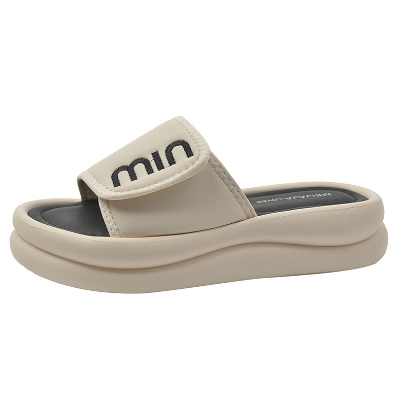 하이 엔드 두꺼운 슬리퍼 여성의 2024 새로운 벨크로 슬라이드 봄 및 여름 아웃웨어 여성용 부드러운 밑창 비치 샌들