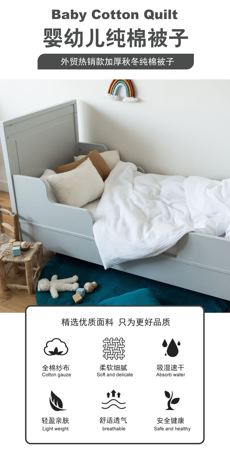 유아용 단색 순면 이불 거즈 크레이프 천 봄 가을 에어컨 이불 가을 해외 아마존 인기 상품
