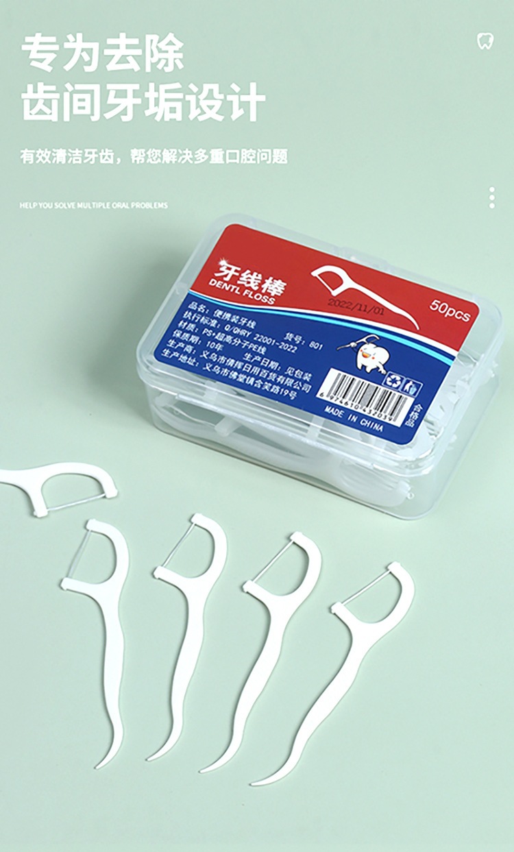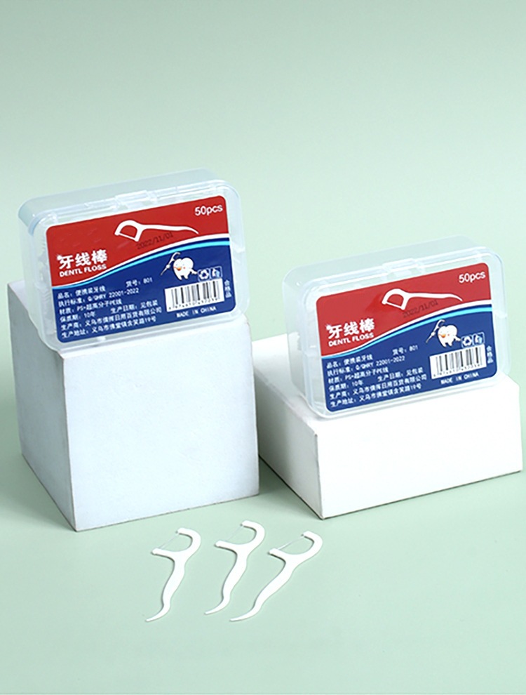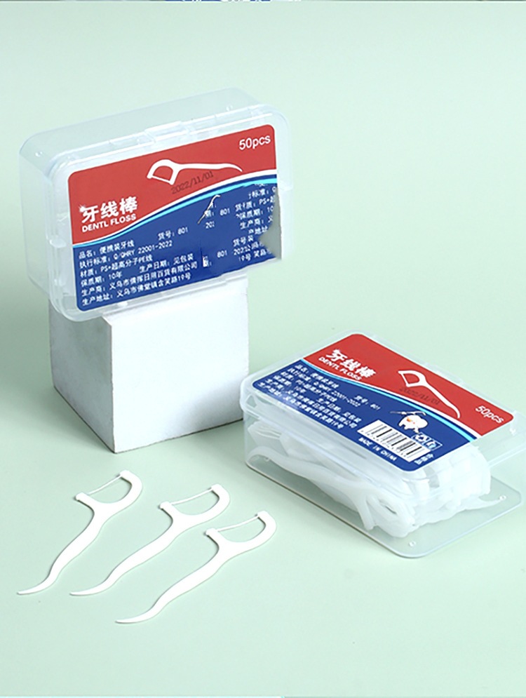 일회용 치과 손실 상자 50 팩 치아 의치 구강 청소 관리 울트라 미세 손실 스틱 휴대용 재고