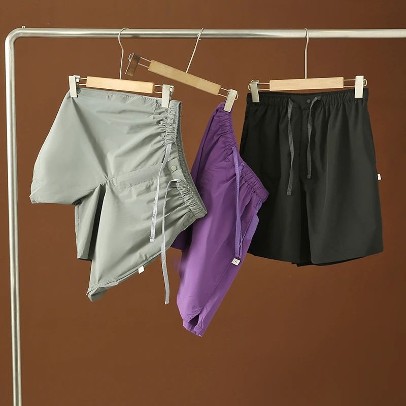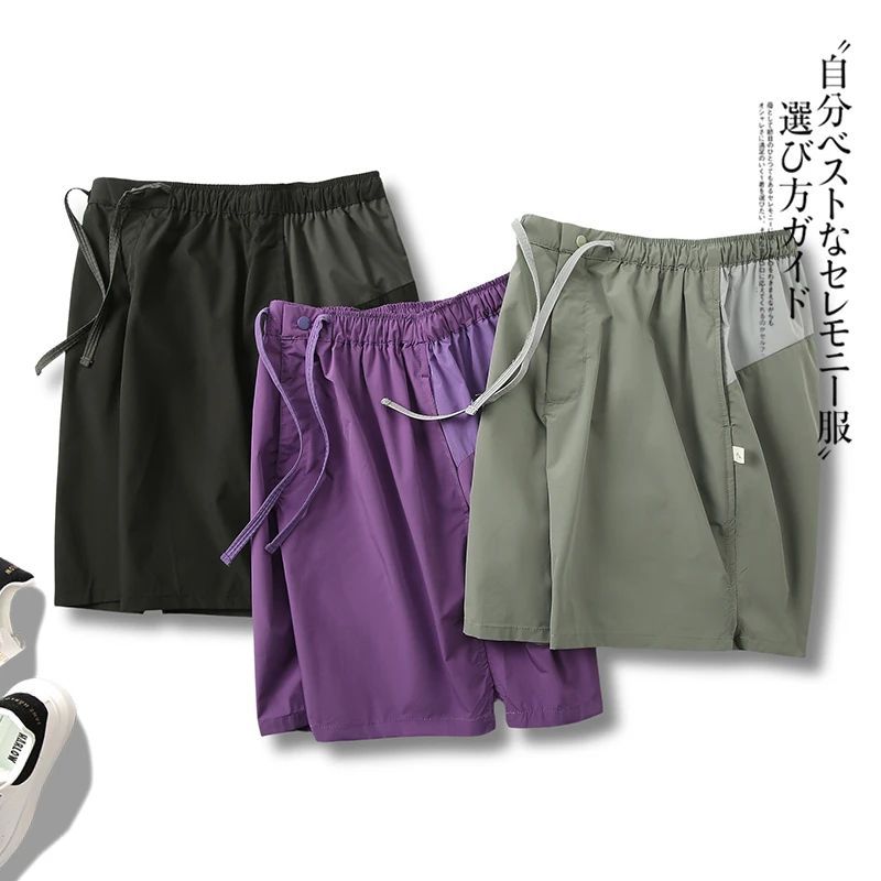 경량 빠른 건조 반바지 커플 여름 새로운 청소년 트렌디 한 중간 길이 바지 바느질 대비 컬러 느슨한 캐주얼 5 길이 바지