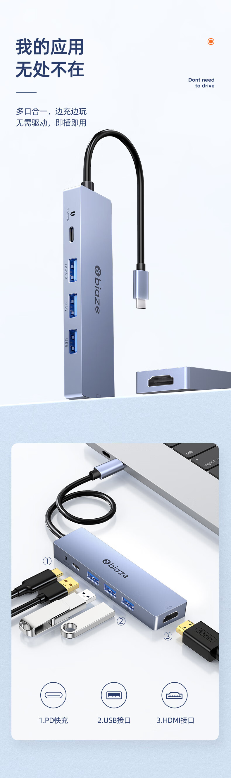 Biaz Type-C 도킹 스테이션 애플 노트북 아이 패드 도킹 스테이션 USB-C HDMI 어댑터스토어 가기