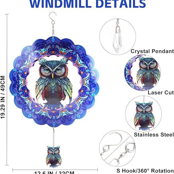 국경 간 폭발 동물 바람 턴 매달려있는 장식품 야외 안뜰 정원 장식 나비 양말 올빼미 3D 회전 바람 종스토어 가기