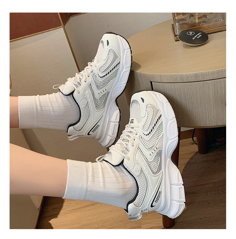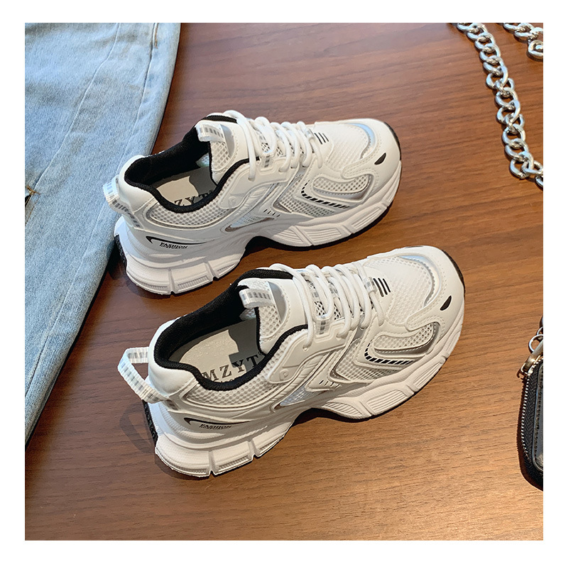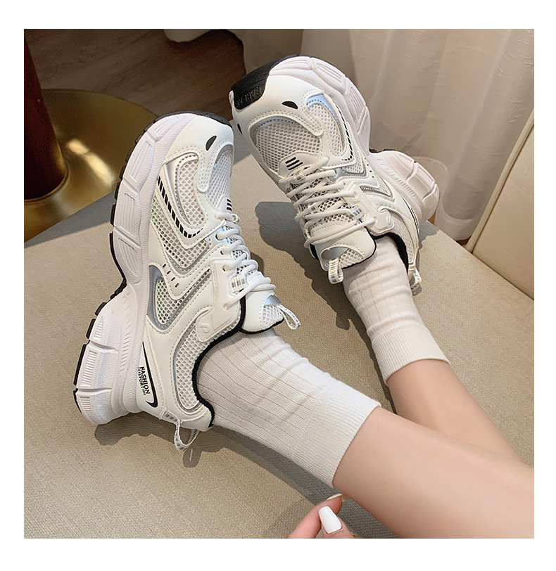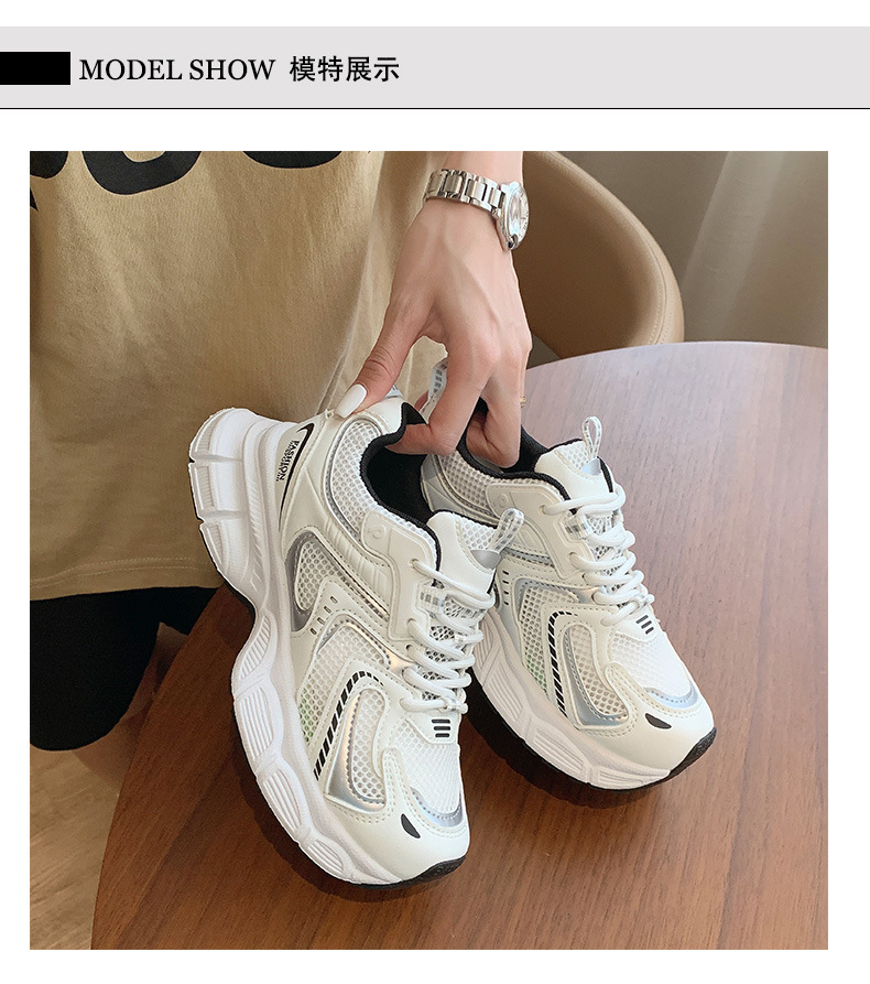 실버 두꺼운 밑창 토르 신발 여성의 2024 년 새로운 여름 메쉬 통기성 경량 높이 증가 캐주얼 운동화스토어 가기