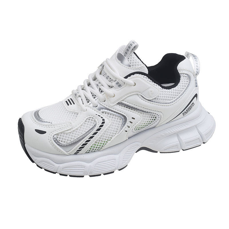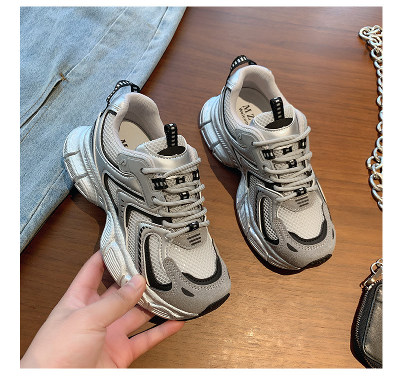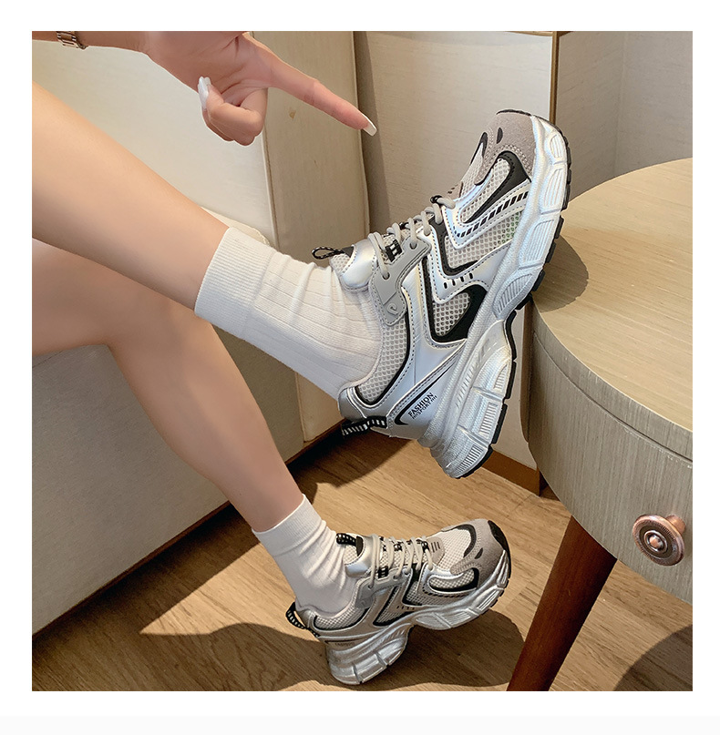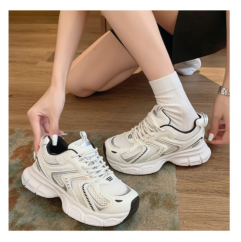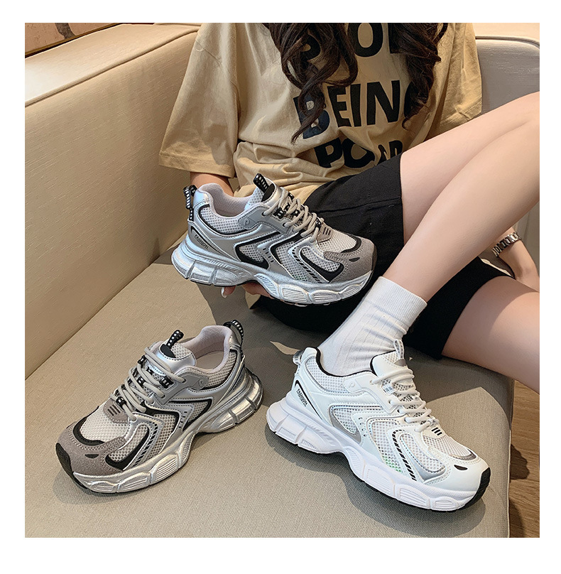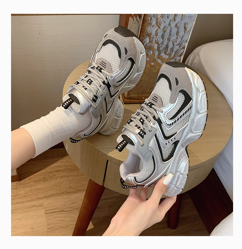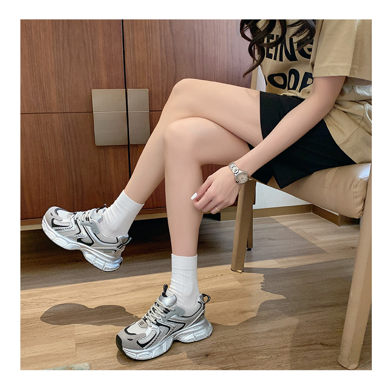 실버 두꺼운 밑창 토르 신발 여성의 2024 년 새로운 여름 메쉬 통기성 경량 높이 증가 캐주얼 운동화