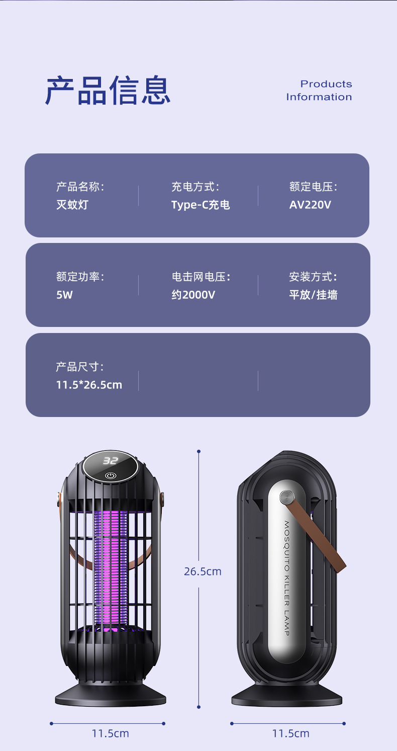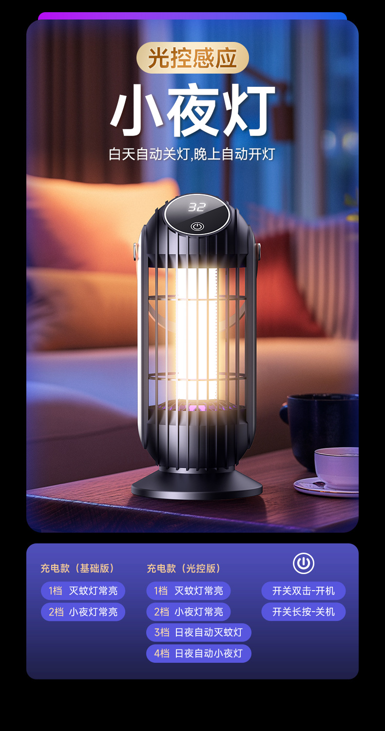 2024 새로운 조명 제어 모기 램프 야외 전기 충격 모기 램프 usb 가정용 실내 모기 방충제 제조 업체 도매스토어 가기