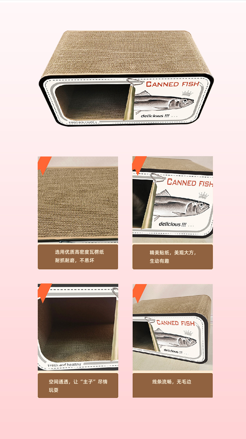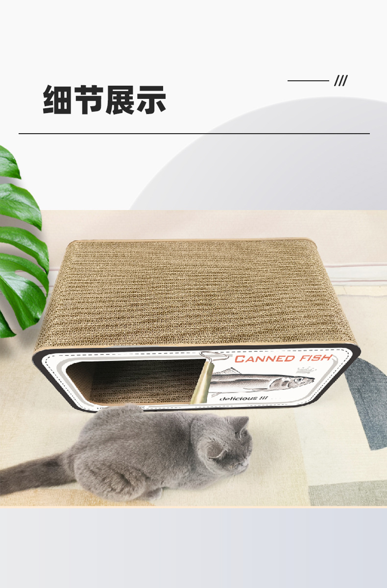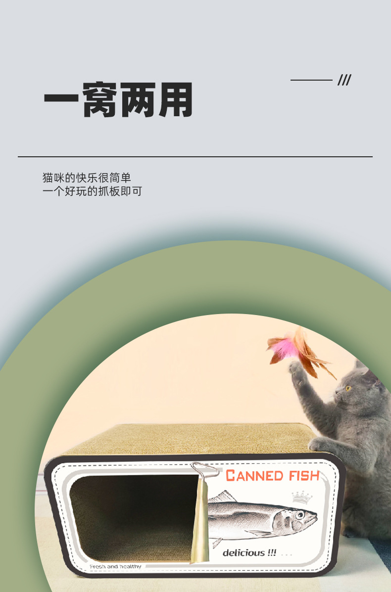 통조림 물고기 창조적 인 고양이 스크래치 보드 고양이 둥지 다기능 더블 레이어 고양이 빌라 MDF 골판지 종이 스크래치 방지 고양이 집