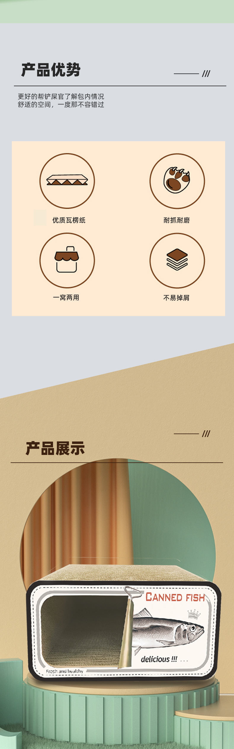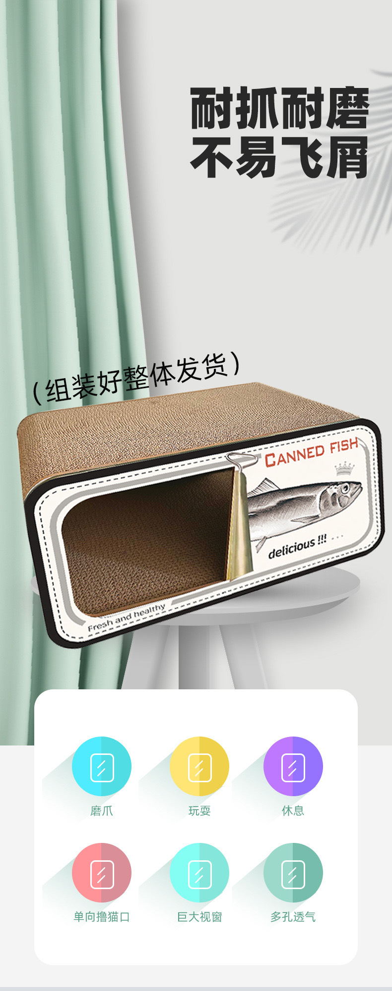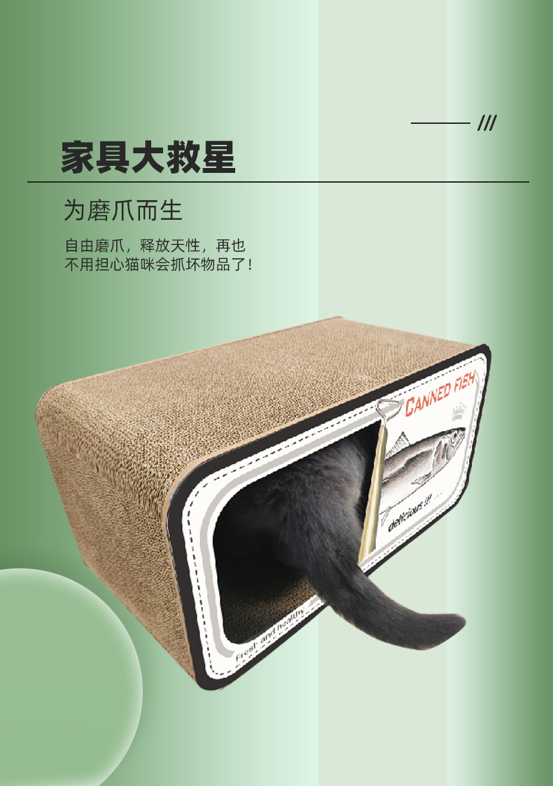 통조림 물고기 창조적 인 고양이 스크래치 보드 고양이 둥지 다기능 더블 레이어 고양이 빌라 MDF 골판지 종이 스크래치 방지 고양이 집